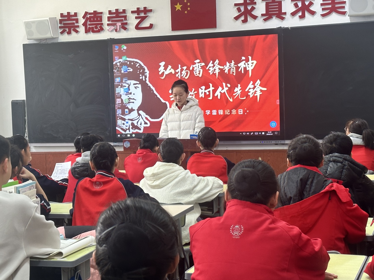 活动以班级为单位,以主题教育为抓手,组织学生集中观看《雷锋》等经典影片及相关主题纪录片。同学们通过影像重温雷锋同志的感人事迹,深切感受榜样在平凡岗位上的坚守与奉献,深刻体悟雷锋精神的初心与时代力量。观影结束后,各班积极开展主题分享与专题讨论,师生围绕雷锋经典事迹、新时代雷锋精神内涵进行深入解读,结合校园志愿服务典型案例,引导学生畅谈学习体会、交流实践思考,推动雷锋精神内化于心、外化于行,筑牢思想根基。