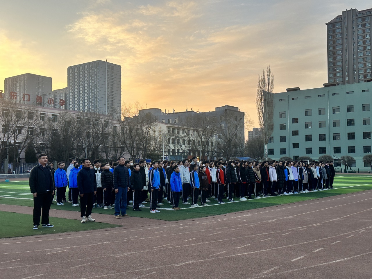 伴随朝阳冉冉升起,五星红旗迎风飘扬。全体师生肃立注目,精神饱满,现场气氛庄重肃穆,爱国情怀与责任担当在每个人心中激荡。
