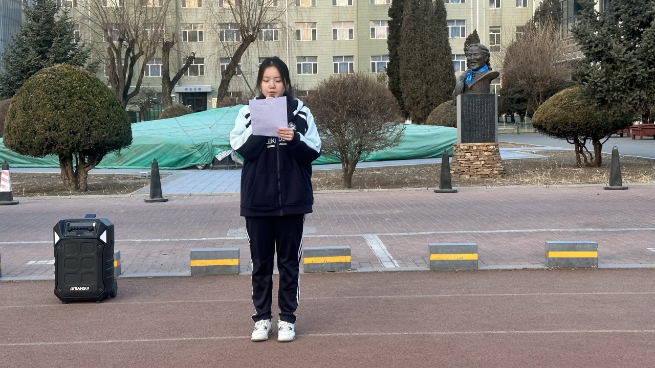 随后,2024级三年制声乐专业阿娜尔同学作为学生代表,以“规范言行,从我做起,共建文明校园”为题作国旗下演讲。她结合校园学习生活实际,倡议全体同学从自身做起,从小事做起,严守校规校纪、规范言行举止、遵守公共秩序、爱护校园环境,以文明自律的实际行动,共同守护平安和谐校园,展现艺校学子良好精神风貌。