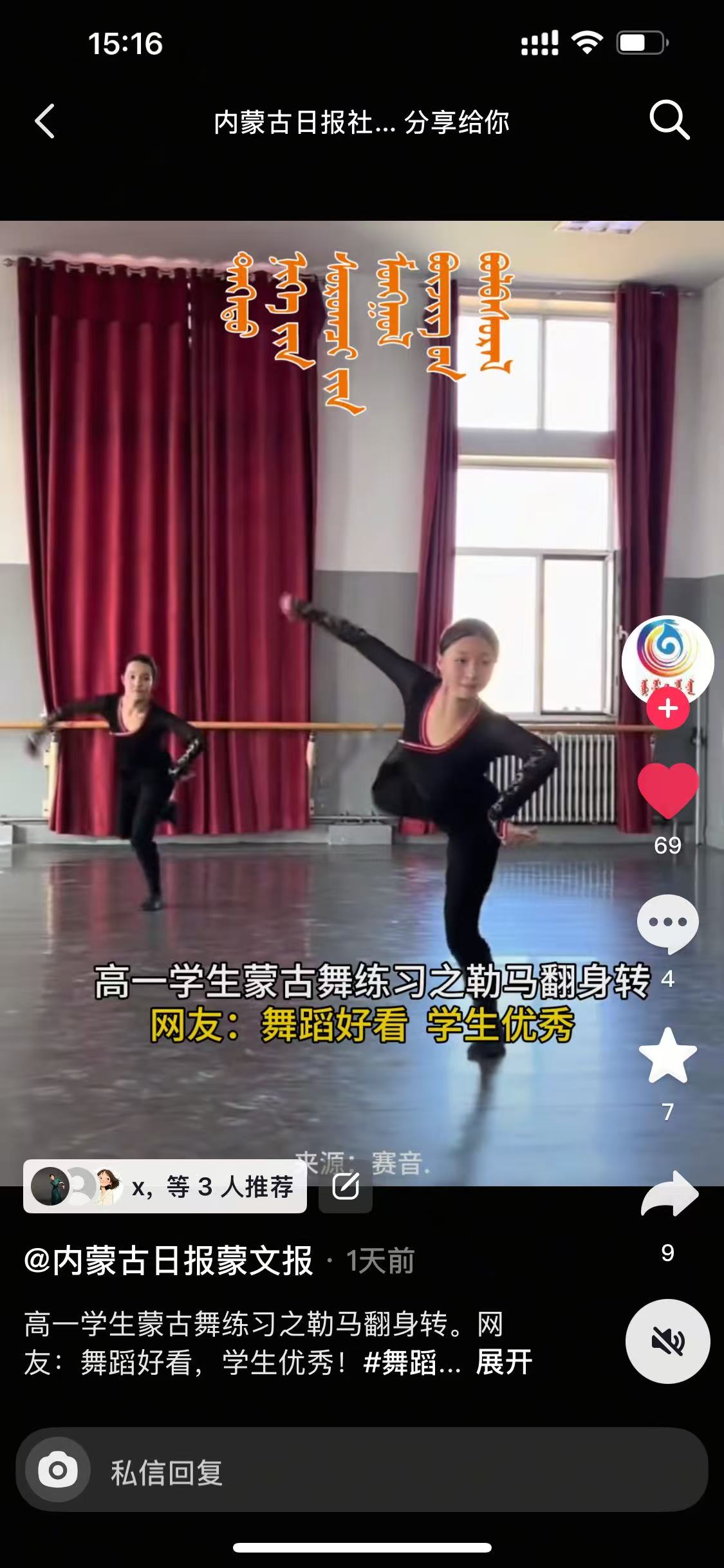 我校蒙古舞教学相关负责人表示,蒙古舞教学视频的广泛传播,是学校在传承和弘扬北疆优秀传统文化方面的一次成功实践。今后,学校将继续挖掘更多优秀传统文化的艺术资源,通过创新教学方式和传播手段,让更多的人了解和喜爱传统文化艺术,为推动文化自信自强贡献力量。
