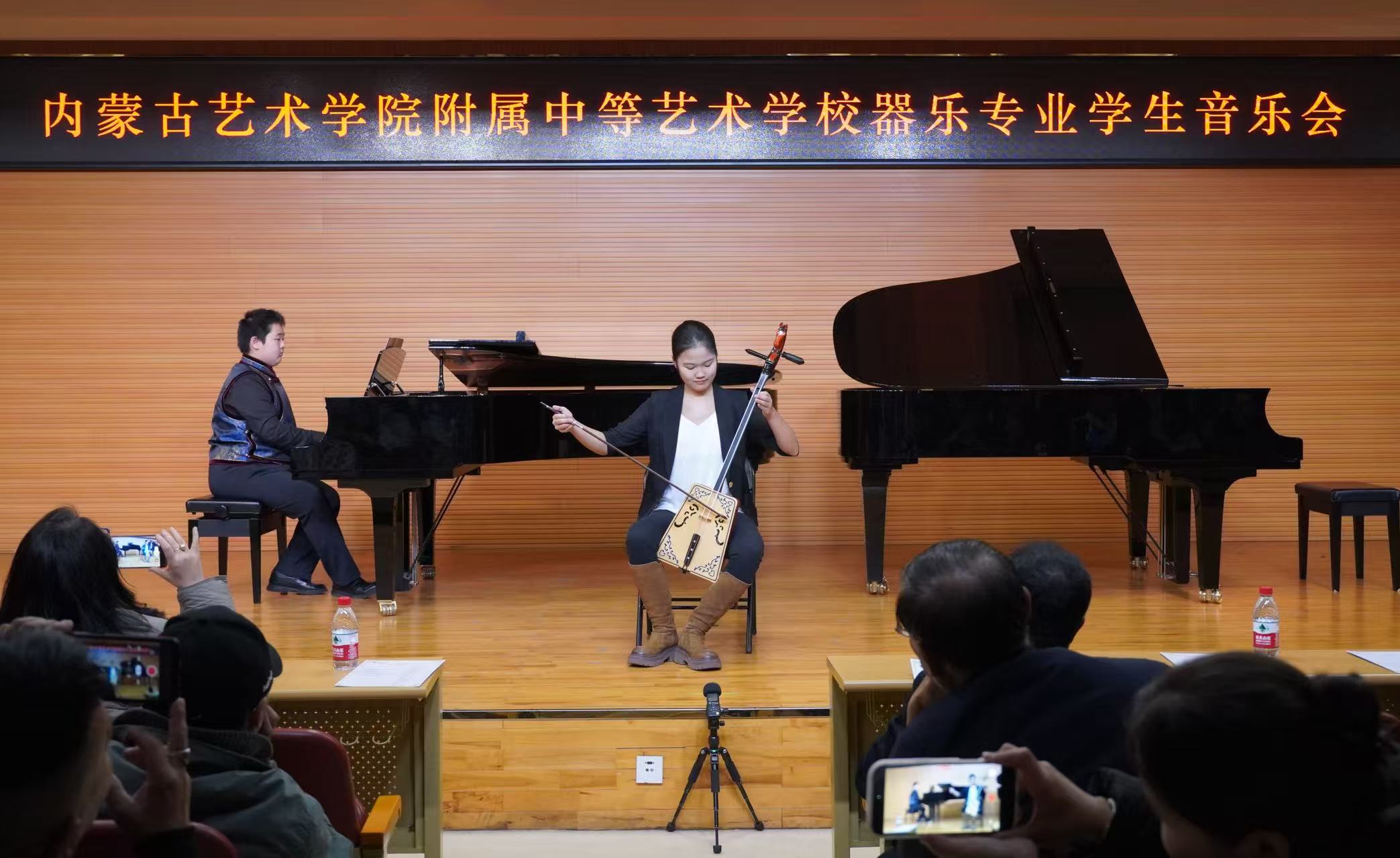 高三年级低音马头琴专业王浩宇演绎了低音马头琴与钢琴协奏《乌力吉巴雅尔亦赫胡尔与钢琴协奏曲》,高二年级长笛专业赵希牧泽长笛演奏《橙色黎明》,就像把黎明的美景展现在眼前。最后,高二年级钢琴专业王凯歌和王凯旋携手献上双钢琴《保卫黄河》,旋律气势恢宏,深深震撼了全场观众。