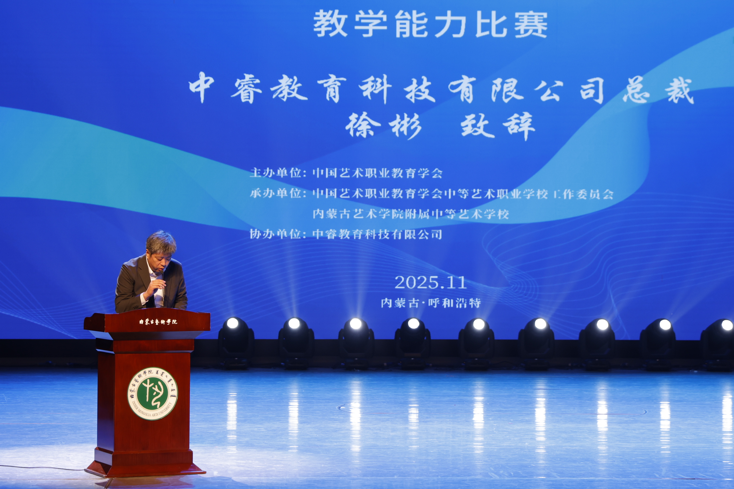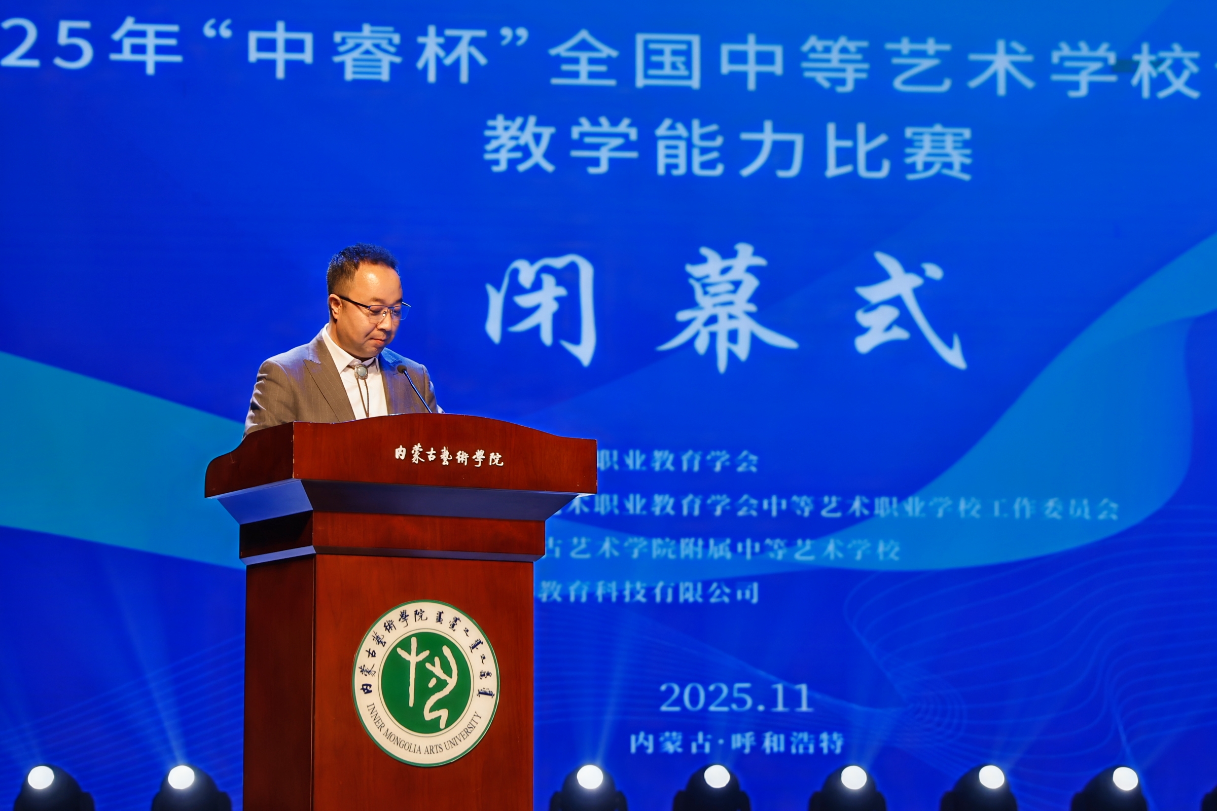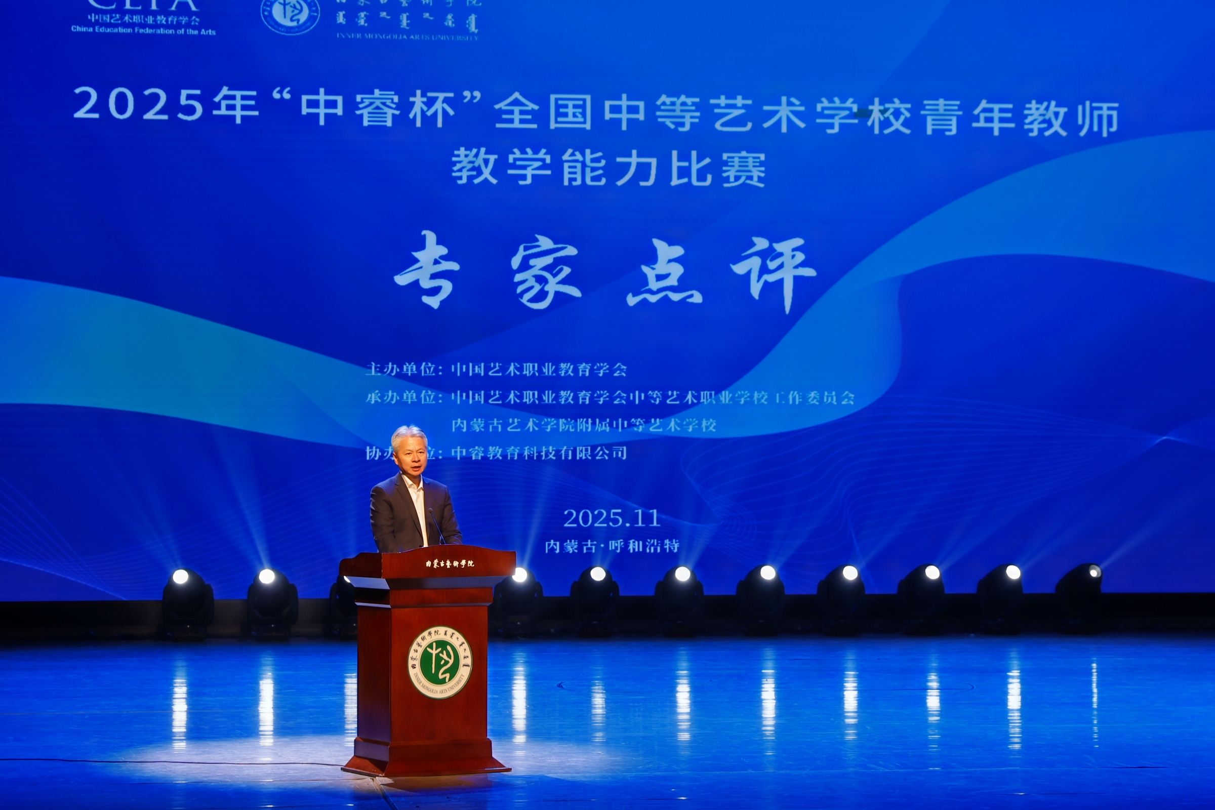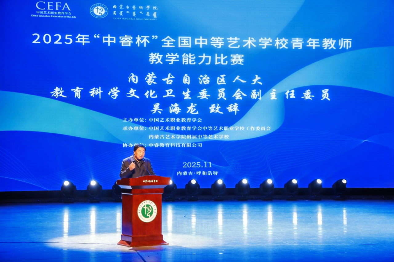 内蒙古自治区人大教育科学文化卫生委员会副主任委员吴海龙、内蒙古自治区教育厅副厅长张俊喜、中国艺术职业教育学会副会长(主持工作)张建平、中国艺术职业教育学会秘书长赵大志、内蒙古艺术学院党委副书记赵晓强、中睿教育科技有限公司总裁徐彬等领导出席闭幕式并致辞。致辞中强调,教师是立教之本、兴教之源,中等艺术教育作为艺术人才培养的基石,肩负着输送高素质艺术后备力量、传承中华优秀传统文化的重要使命,青年教师更是这一使命的传承者与开拓者。本次“中睿杯”比赛为全国艺术教育领域的青年教师提供了展示才华、交流经验、创新思路的优质载体。