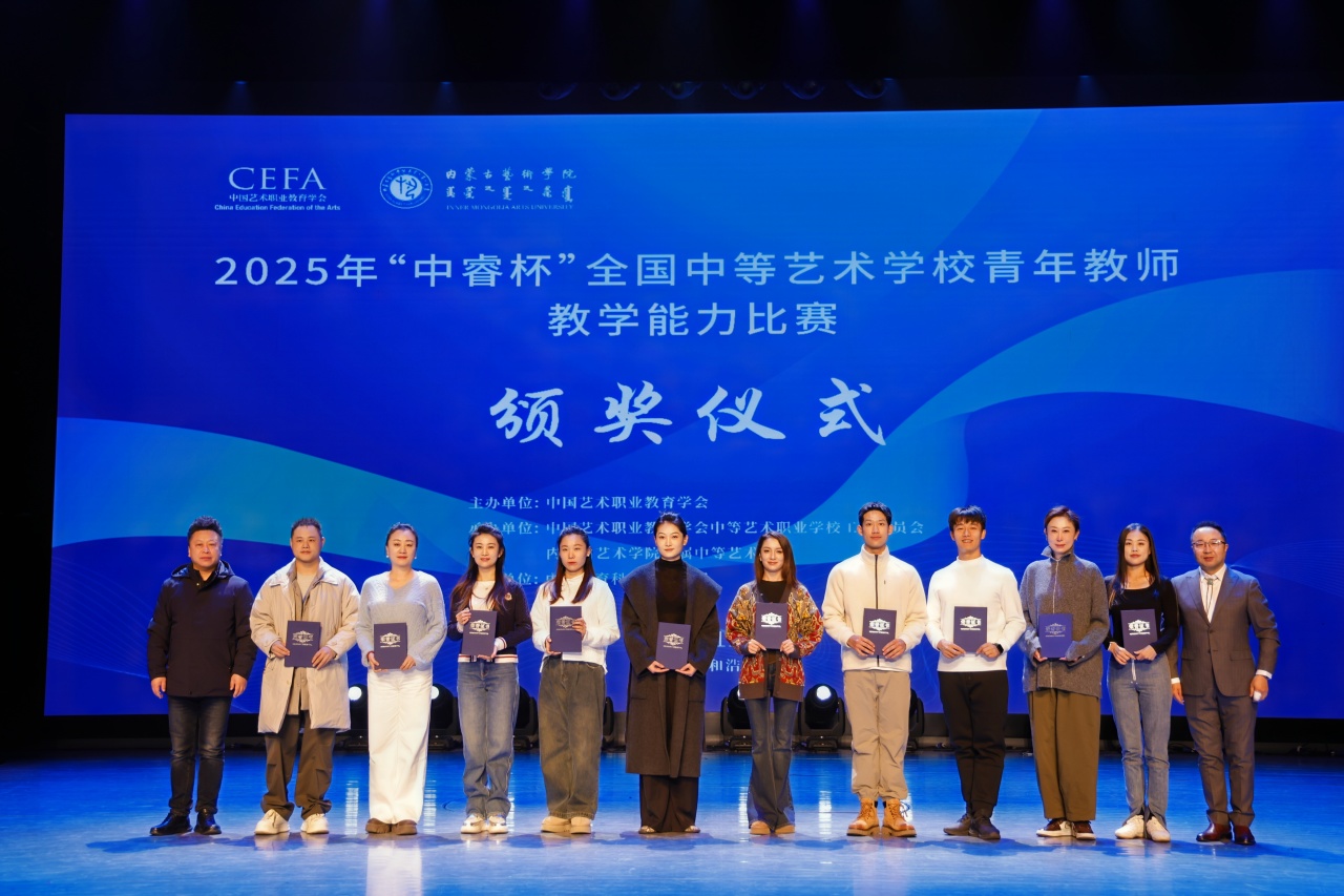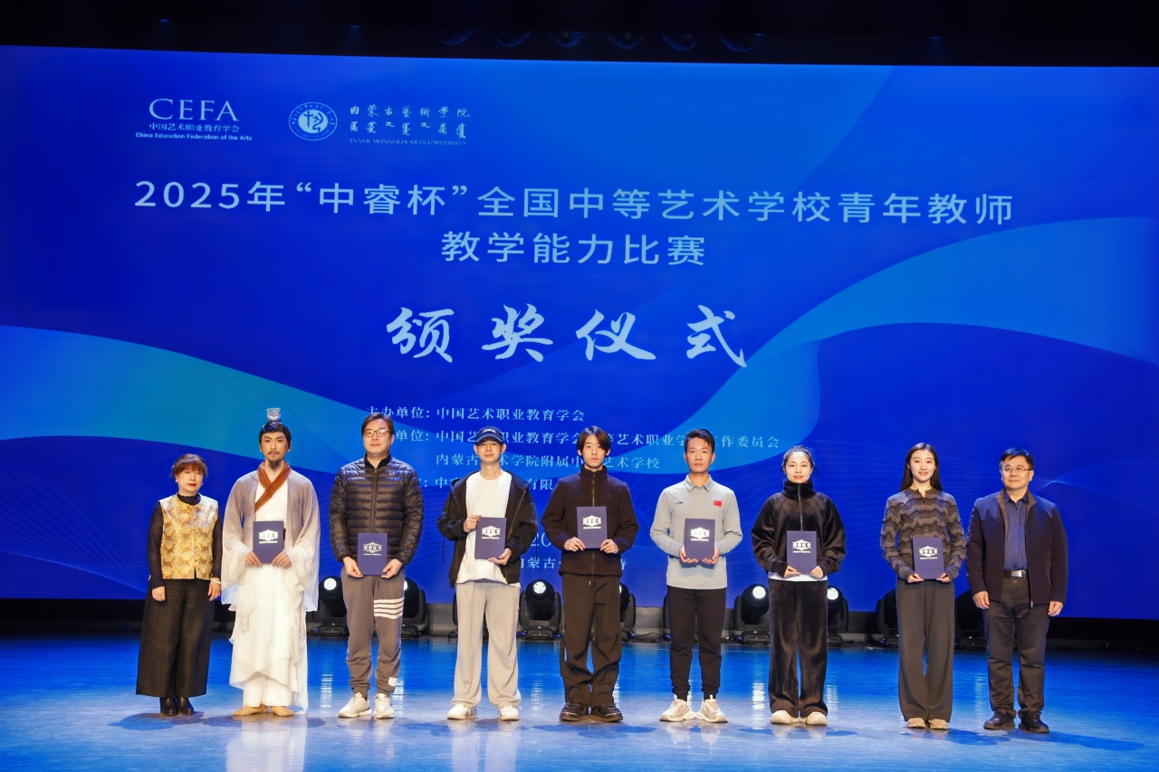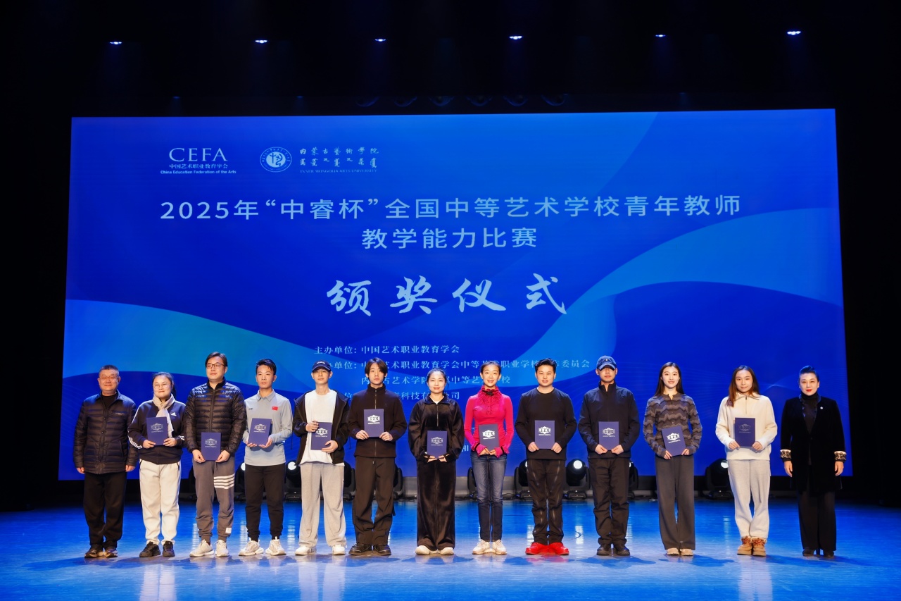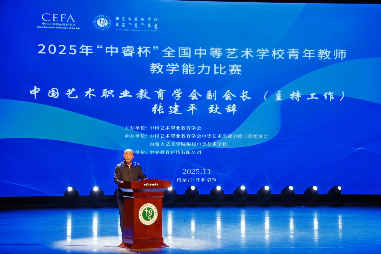 11月16日,由中国艺术职业教育学会主办、内蒙古艺术学院附属中等艺术学校承办的2025年“中睿杯”全国中等艺术学校青年教师教学能力比赛在内蒙古艺术学院演艺厅举办闭幕式。本次比赛设置了舞蹈、影视赛项,聚焦立德树人根本任务,充分展现了新时代艺术教育的丰硕成果与青年教师的卓越风采。闭幕式由中国艺术职业教育学会中等艺术职业学校工作委员会副会长兼秘书长、本届“中睿杯”全国中等艺术学校青年教师教学能力比赛仲裁委员会主任、青岛艺术学校党委书记王伟主持。