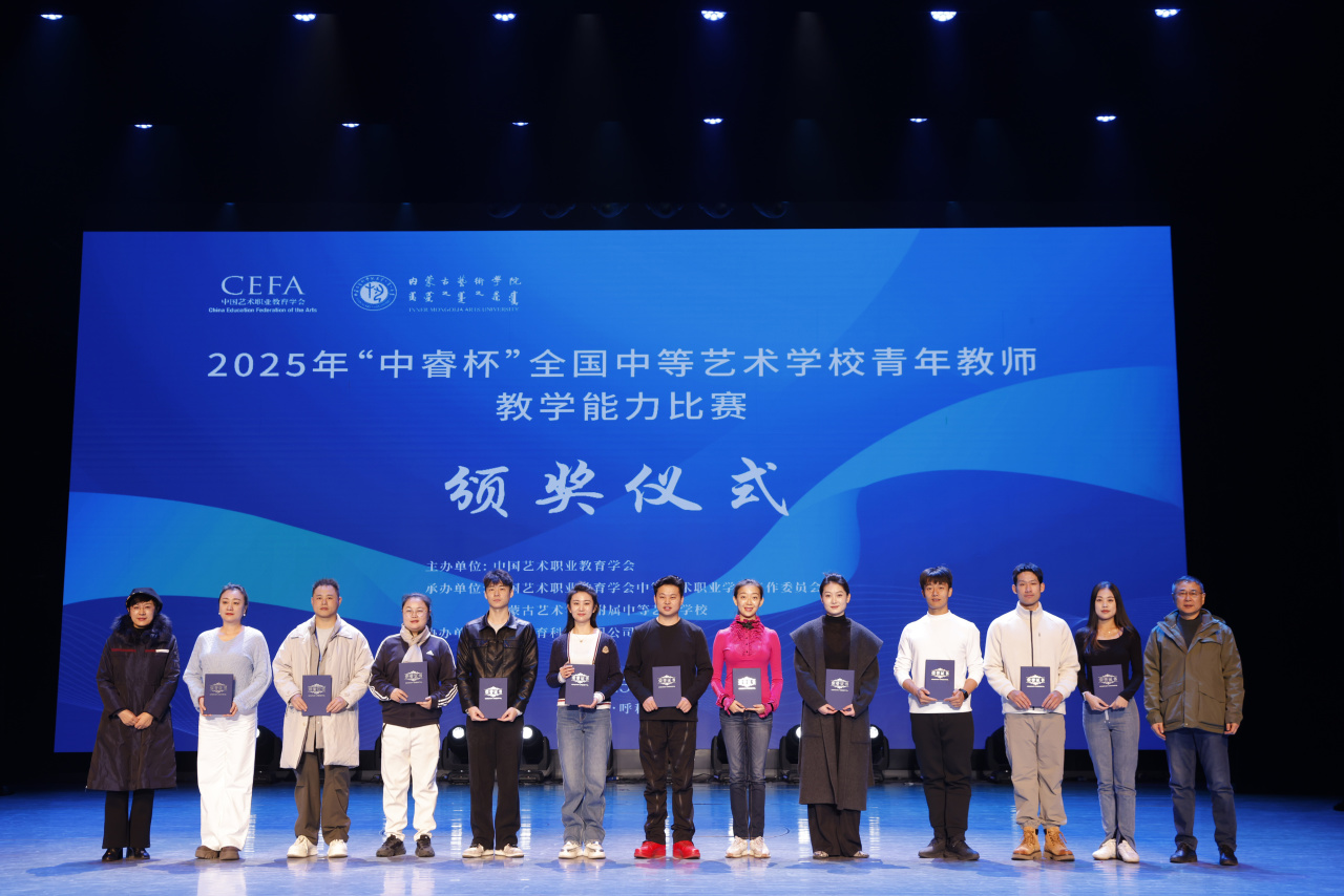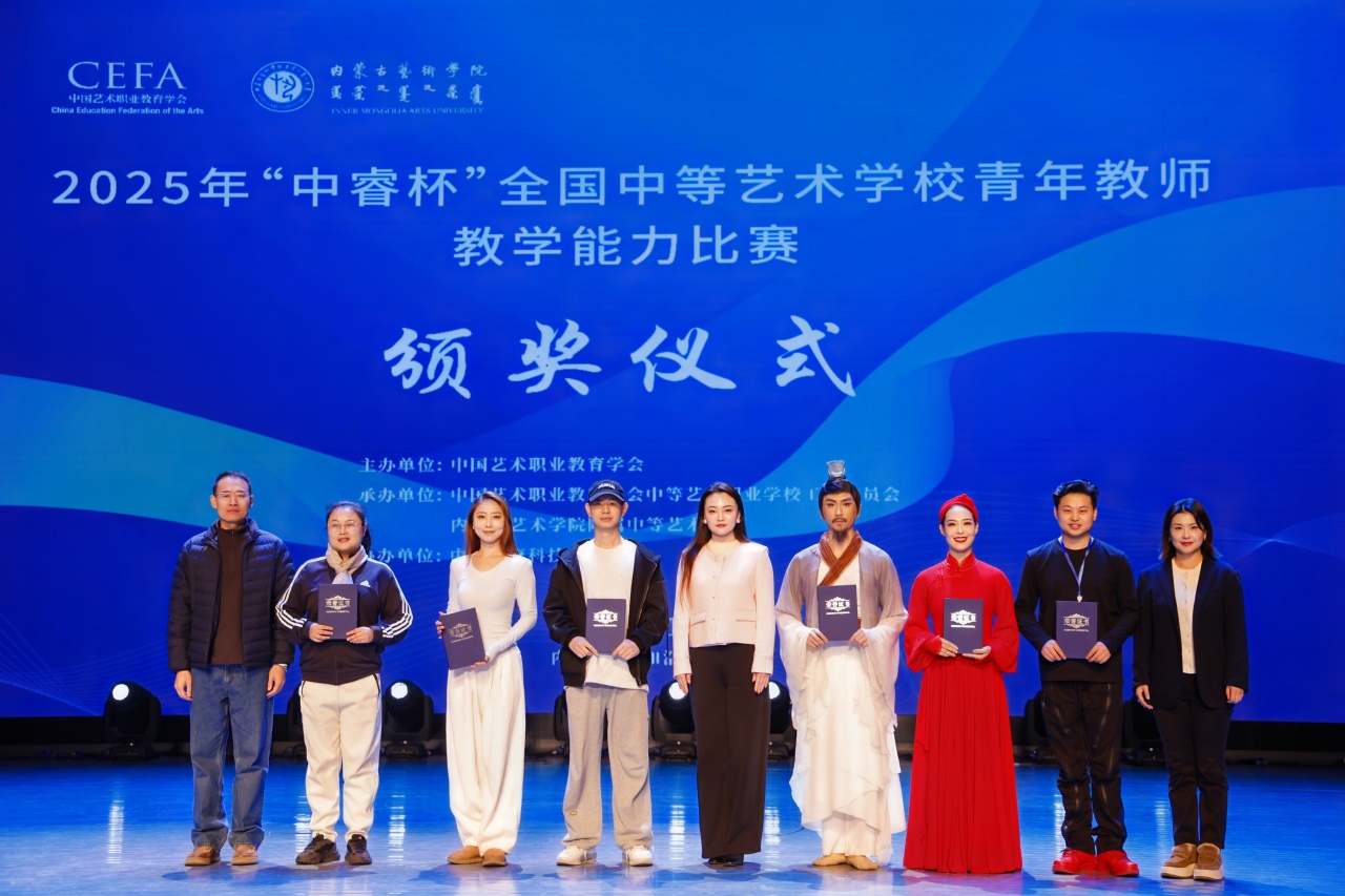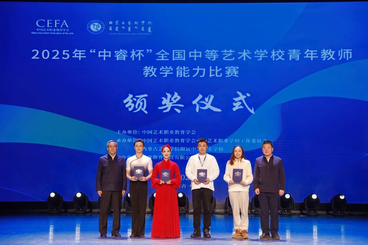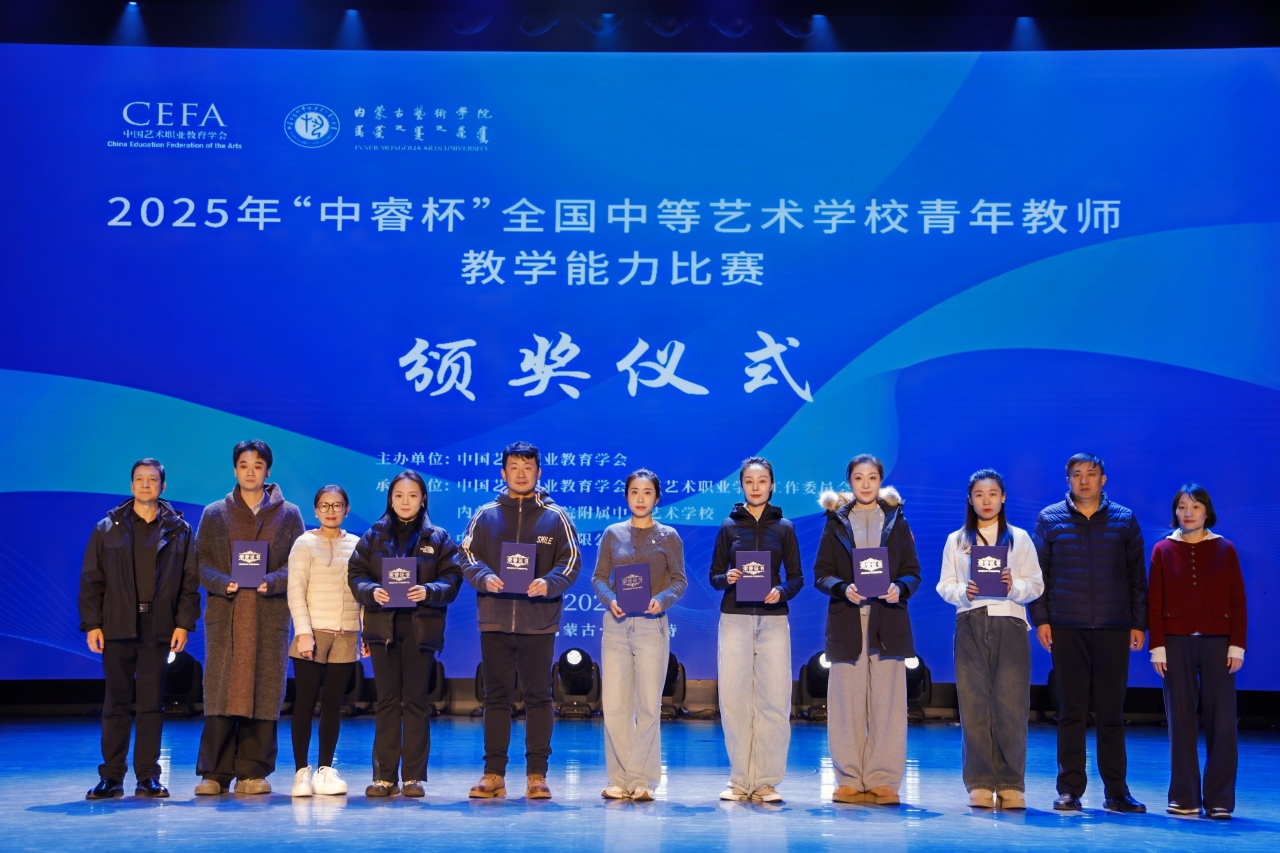 11月16日,由中国艺术职业教育学会主办、内蒙古艺术学院附属中等艺术学校承办的2025年“中睿杯”全国中等艺术学校青年教师教学能力比赛在内蒙古艺术学院演艺厅举办闭幕式。本次比赛设置了舞蹈、影视赛项,聚焦立德树人根本任务,充分展现了新时代艺术教育的丰硕成果与青年教师的卓越风采。闭幕式由中国艺术职业教育学会中等艺术职业学校工作委员会副会长兼秘书长、本届“中睿杯”全国中等艺术学校青年教师教学能力比赛仲裁委员会主任、青岛艺术学校党委书记王伟主持。