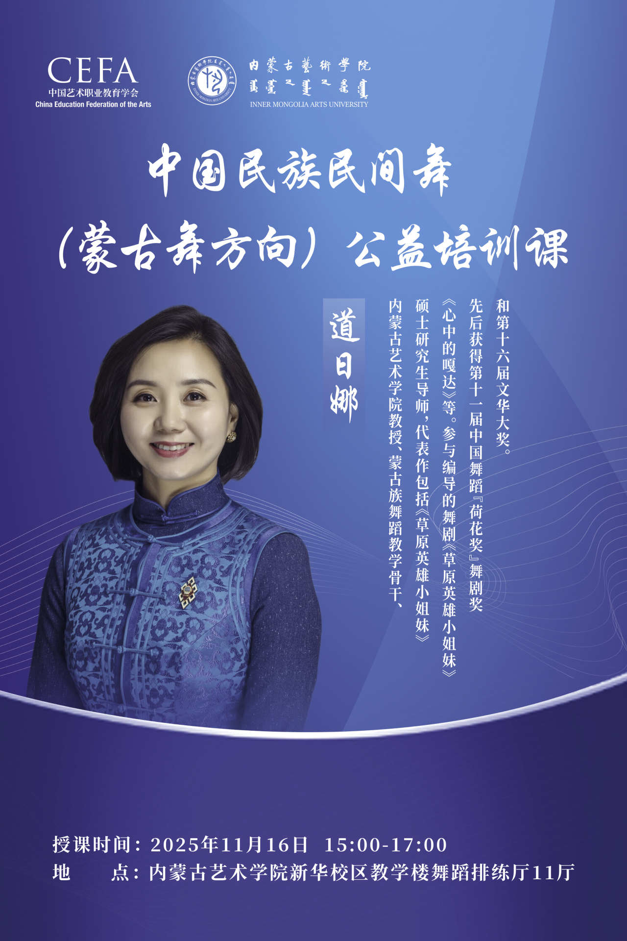 本次培训课是我校承办由中国艺术职业教育学会主办的2025年“中睿杯”全国中等艺术学校青年教师教学能力比赛之后,为参赛选手安排蒙古舞公益培训课,旨在搭建专业交流学习平台,帮助选手实现能力进阶。