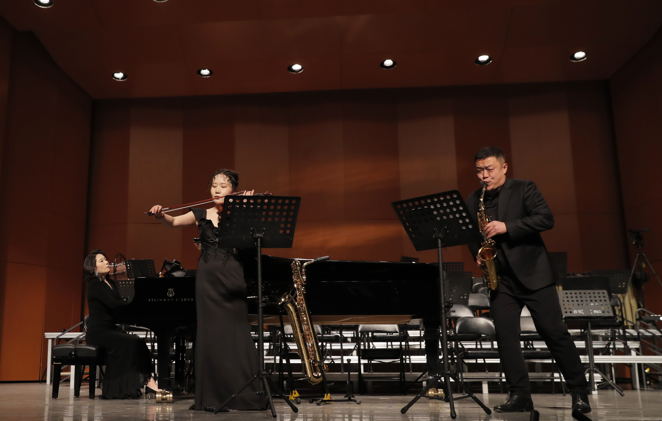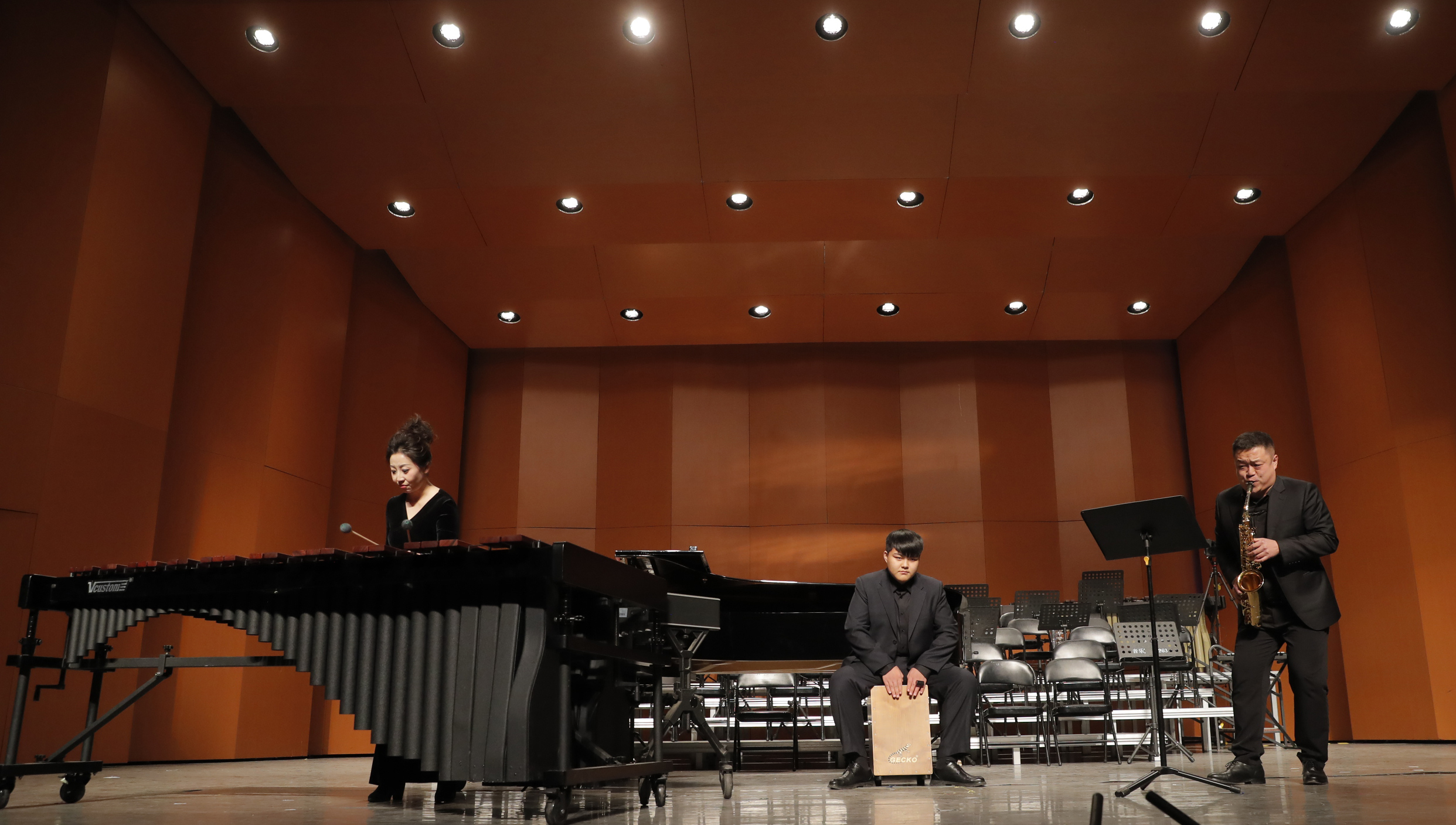 音乐会开场前,我校校长布仁白乙进行了热情洋溢的新年致辞。音乐会曲目兼具经典底蕴与创新表达,亮点十足。门德尔松《d小调第一钢琴三重奏》以钢琴与弦乐平等对话,融合古典严谨与浪漫深情;《探戈练习曲》No.3借马林巴与萨克斯勾勒独特律动,《小憩片刻》以单簧管与钢琴演绎出冷静优雅的爵士风情。罗西尼《D大调二重奏》凭低音弦乐组合彰显古典结构与浪漫歌唱性,《徽风皖韵》借山水景致传递人文品质与岁月坚韧,《布宜诺斯艾利斯的四季》冬&春乐章刻画季节更迭与人心向暖,满含对希望的期盼。《花冠》旋律轻快庄重交替,象征幸福永恒;《征服天堂》音势震撼,传递无畏勇气与坚定信念;《“草原”随想曲》融合草原之美,《万马奔腾》西洋管弦乐改编版更显激情澎湃,尽显中华传统文化深厚底蕴。