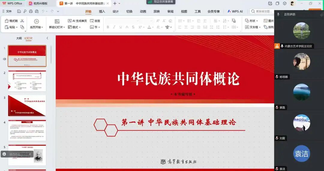 为进一步夯实铸牢中华民族共同体意识教学过程,强化课程教学基础,提升教学质量与实效,2月26日,马克思主义学院铸牢中华民族共同体意识教研室以线上形式召开集体备课会,教研室全体教师参会,围绕新学期课程教学进度、教学重点、实践活动安排及集体备课核心内容展开深入研讨,凝聚育人共识,明确教学方向。