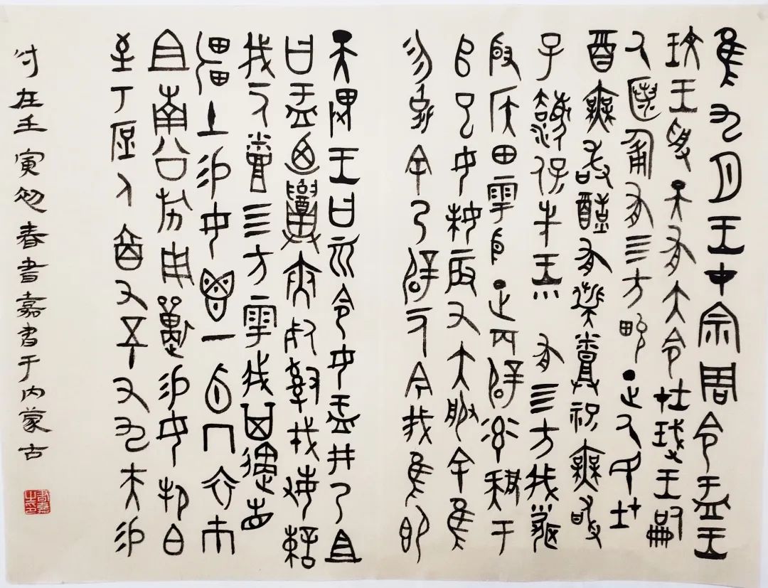 在这一个月的篆书学习中,收获了许多。相较于上学期来说,对篆书也有了更多不同的体悟,但在创作中还是存在较多的困难与问题,在今后还需勤加练习。