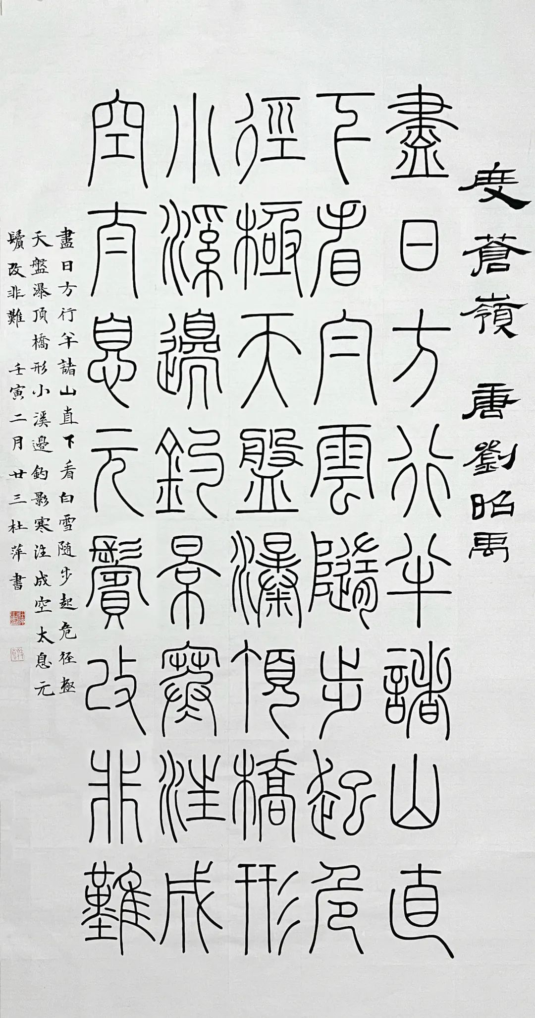 细致的临摹是我们理解一篇古帖的开始。仔细还原,争取最大程度地回归古帖。同时创作也不仅仅是在笔画结构上让人体会到古帖之韵,更要在字组、线条,布局上,从而整体透露出潇洒飘逸的清篆风骨。我也会将这些宝贵的经验牢记,并不断完善自身水平,不负厚望。
