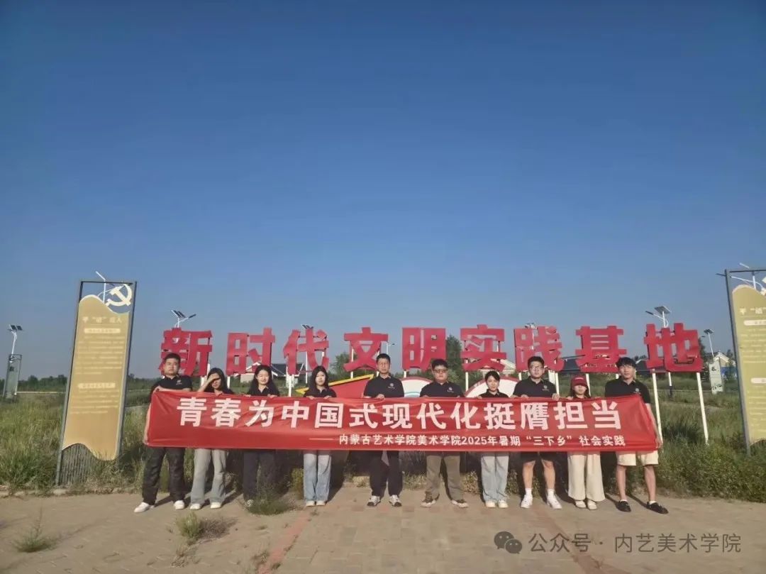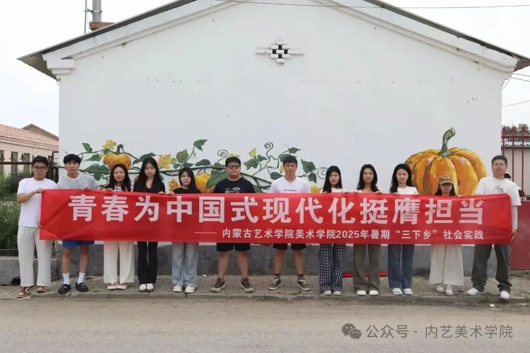 为深学笃行党的二十大精神与习近平总书记关于青年工作的重要思想,引领青年学子在基层沃土中淬炼信仰、增长才干、奉献力量,以实际行动践行“青春为中国式现代化挺膺担当”的青春誓言,2025年7月,内蒙古艺术学院美术学院“三下乡”乡村振兴促进团奔赴鄂尔多斯市达拉特旗恩格贝镇蒲圪卜村,执青春之笔,绘振兴之梦,开启了一场以艺术赋能乡村的生动实践。