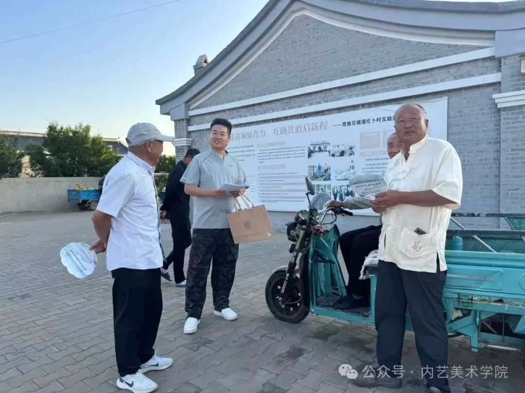 抵达达拉特旗恩格贝镇蒲圪卜村后,师生与村民深入交流,了解当地村民所需所想,紧扣时代脉搏与活动主题。他们深入田间地头,聆听村民心声,将“青春为中国式现代化挺膺担当”的宏大主题,细化为一系列饱含深情、独具匠心的艺术创作方案。画笔未动,情意已浓,只为将美好的艺术种子播撒在“暖城”希望的田野上。