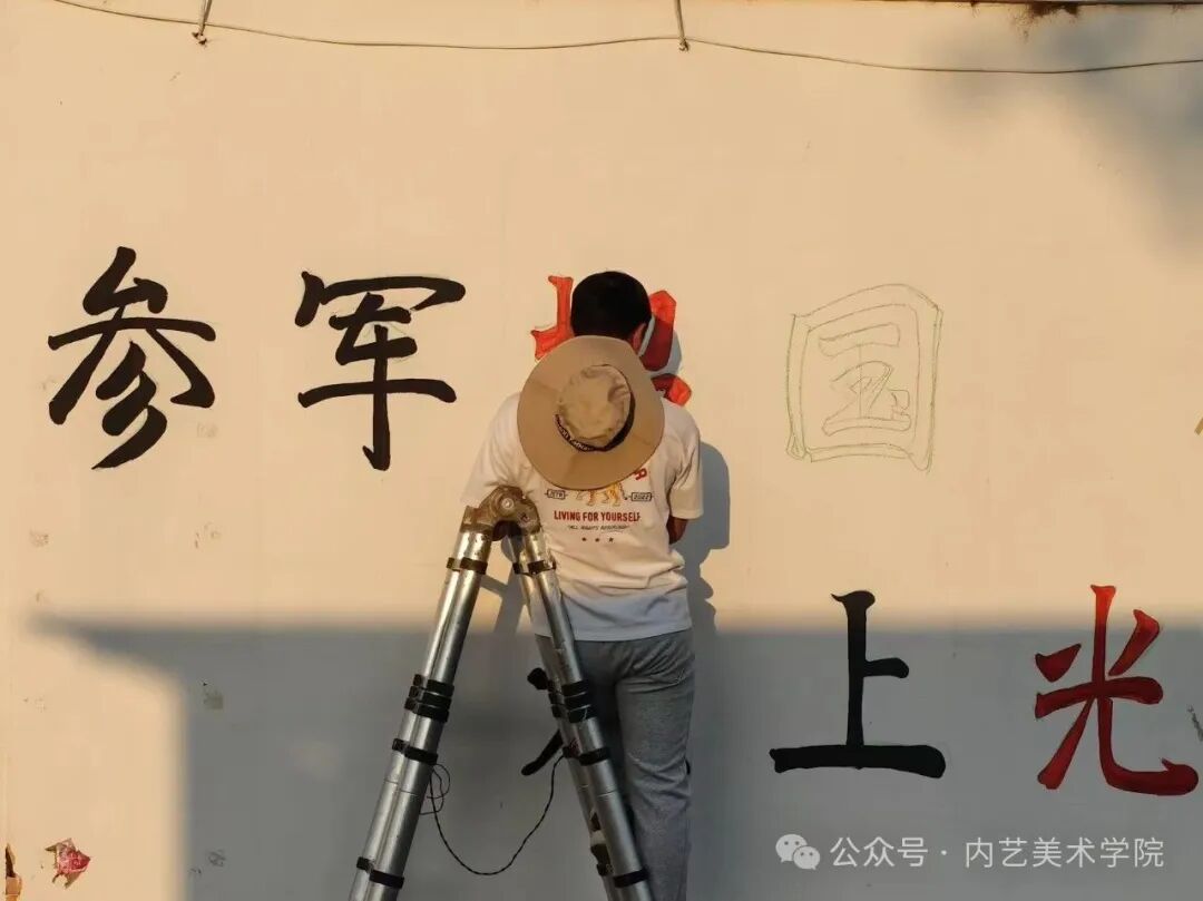 画笔所至,旧貌换新颜。此次墙绘活动,远非简单的环境美化,更是一次深刻的文化浸润与精神提振。它美化了村容村貌,提升了乡村颜值;它涵养了文明乡风,滋养了村民心田;它激发了内生动力,凝聚了振兴共识。一面面“会说话的墙”,成为展示新时代乡村气象、弘扬主旋律、传播正能量的亮丽风景线,无声地诉说着内艺美院学子服务乡村的赤子情怀与责任担当。是落实学校“22352”育人模式贯穿人才培养全过程的体现,将“一院一品”落实到学生思想理论教育和价值引领上,提升专业能力,推动美术学院工作创新。同学们在躬身实践中,深刻体悟了艺术服务人民、服务社会的真谛,也用行动诠释了“青春为中国式现代化挺膺担当”的主题。