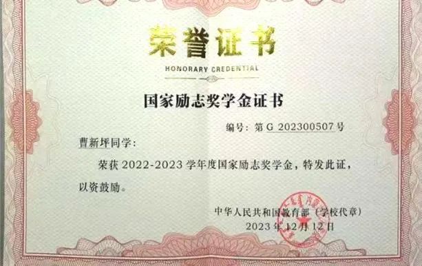 2024年12月,荣获2024-2025学年本科生国家奖学金;