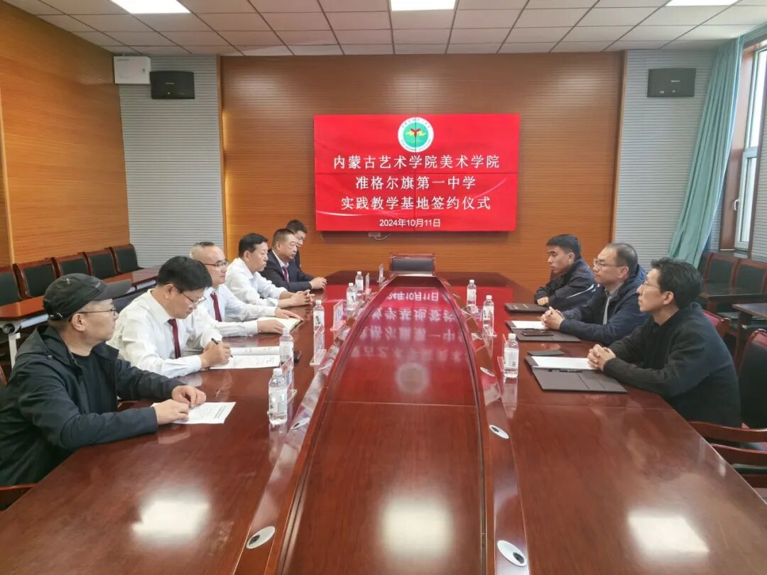 此次共建实践教学基地签约挂牌仪式,有利于培养美术高素质人才,实现美育教学实践向社会实践的高效转化。根据协议,我院相关专业将与准格尔旗第一中学开展专业共建、教师培训、人才培养、实习实践等方面的合作。双方将合作为高中制定人才培养方案、专业教学计划、质量检测办法等,我院的专家教授将定期到中学指导教学、培训教师,并适时设立“名师工作室”,全方位助力该校艺术教育快速发展。