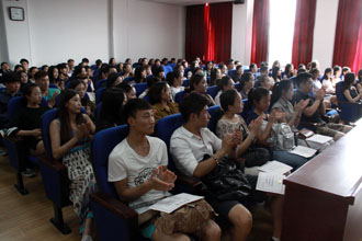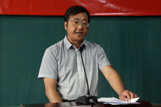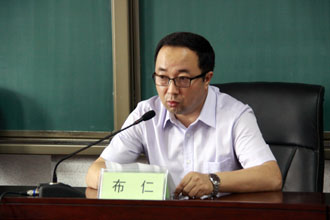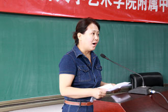 附属中专党总支书记布仁(左图)宣读表彰决定;附属中专校长侯守智(右图)讲话