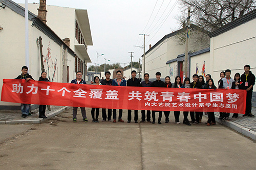 2015年10月22日下午,我院艺术设计系学生志愿团20余名学生乘车前往呼和浩特市玉泉区昭君路办事处新胜村进行“助力十个全覆盖,共筑青春中国梦”大学生志愿者服务活动。