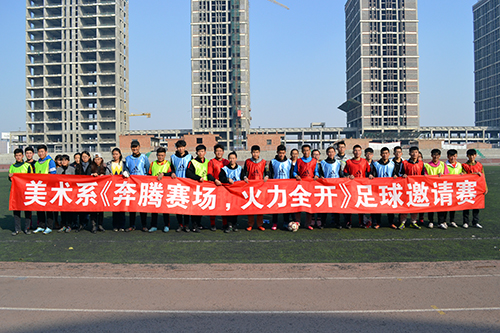 为促进我院“校园足球”的发展,增进我院各系同学们之间的友谊,激励同学们对足球的热爱,提高同学们的体质健康和运动技能,2015年10月30日,美术系在我院南校区体育场举办了“奔腾赛场•火力全开”足球邀请赛 。