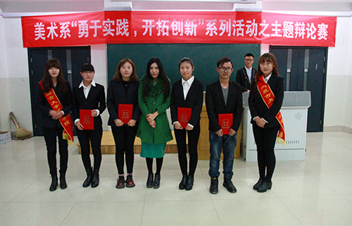 为提高同学们的思辨能力、语言表达能力和团队协作能力,2015年11月24日晚七点美术系在我院南校区艺术楼H区4007教室举办了“勇于实践,开拓创新”主题辩论赛。