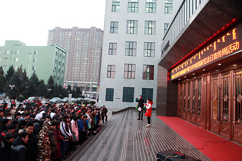12月4日早7:20,我院附属中专举办“宪法学习日”活动宣传周启动仪式,附属中专党总支书记布仁,校长侯守智,副校长褚庆林及全校师生700余人参加活动。启动仪式分为三项议程:“升旗仪式”,“国旗下宣誓”“宣布活动周方案”,