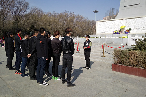 2016年4月4日,新媒体艺术系团总支组织部分学生党员及入党积极分子前往青城公园烈士纪念碑进行扫墓悼念活动。