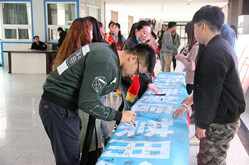 为继续深入贯彻落实全区及学院安全管理工作会议精神,深化校园安全教育,提高学生安全意识,进一步加强学生社区安全管理工作,为我院学生创造良好的生活环境,美术系学生支部于2016年4月15日开展了“遵守规章制度,禁用危险物品,携手共创平安社区”教育宣传活动。