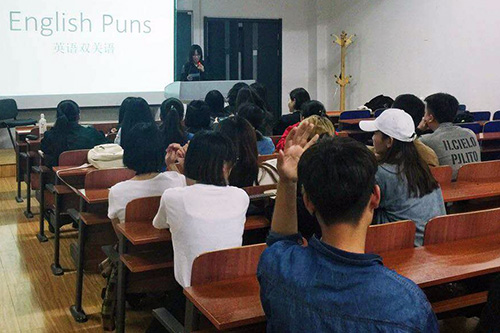 4月19日晚,我院2016年“英语角”系列活动在南校区举办。本次活动的主题为“英语双关语”(English Puns),公共课教学部大学外语教研室教师王丽娜指导本次活动。