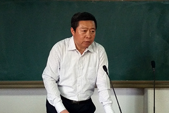 左图:舞蹈系党总支书记王铮主持会议;右图:学习会现场