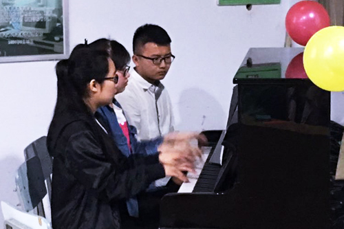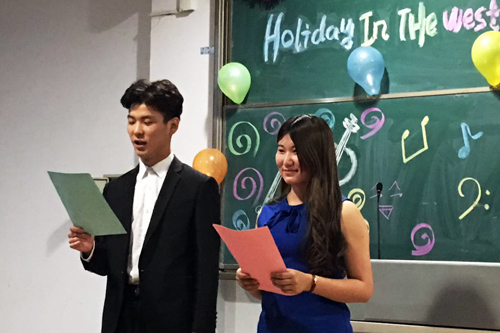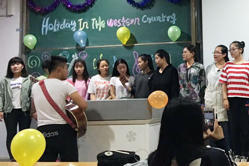 在活动中,同学们用英语分别介绍了圣诞节(Christmas)、情人节(Valentine’s Day)、感恩节(Thanksgiving Day)等西方国家的一些重要节日,并表演了各种精彩的节目,有器乐表演手风琴四重奏《遗忘》(Forget)、钢琴四手连弹《加勒比海盗》(The Pirates of Caribbean)、《匈牙利舞曲》(The Hungarian Dances),有欧美流行歌曲演唱《爱人如你》(Someone like you)、《我心永恒》(My heart will go on)、《你是我的阳光》(You are My Sunshine),还有同学们编创的歌曲《失败者》(The Loser)和机械舞等。表演期间,还穿插了英语猜词、运气球、我爱记歌词等简单而有趣的小游戏,同学们的喝彩声、欢笑声接连不断。来我院进行教学实习的美国佛蒙特大学研究生科斯•威廉姆斯(Keith Williams)参加了此次活动,与同学们进行了英语和文化交流,对同学们的专业表演赞叹不已。整场活动内容丰富、气氛热烈、趣味性强,同学们积极热情、表演精彩、充分感受到英语学习的乐趣和价值,提高了英语交流和沟通能力。