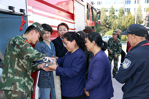 此次消防逃生演练分为两个部分组成。第一部分首先由呼和浩特市新城区消防大队为教职工、学生讲解了当火灾发生时逃生的注意事项。第二部分是由新城消防大队一中队的消防官兵为教职工、同学们做消防水带、灭火器的使用方法的讲解,并且请出将近60名教职工、学生代表进行了灭火器的使用和灭火实际操作。整场演练结束后,保卫处副处长陈飞对本次消防逃生演练作了总结讲话。