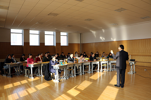 2016年11月17日下午3点,影视戏剧系在艺术楼形体教室开展了“创新 创业”教育系列讲座之----《创新人才培养需要创新的教学方法》。教务处处长苗金海、影视戏剧系党总支书记王锦文、副主任路广及影视戏剧系全体教师一同听取了讲座。