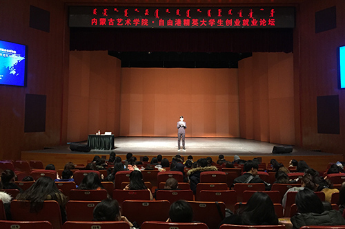 我院团委(学生处)就业指导中心于2016年12月2日和9日分别在学院演艺厅实验剧场举办“精英大学生创业就业论坛”。本次论坛邀请内蒙古自由港教育科技有限公司的多名导师为大学生进行辅导讲座。既帮助大学生树立正确的理想规划,同时也为困扰大学生创就业想法与现实脱钩、实践经验不足等问题进行科学的梳理与指引。
