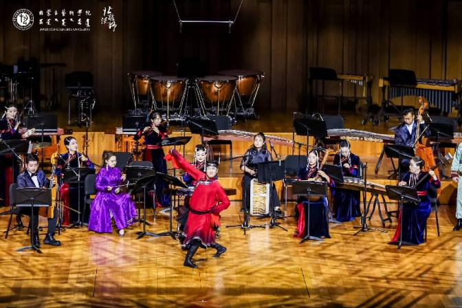 在乌兰牧骑艺术实践课程负责人、项目负责人乌琳教授的统筹引领下,此课程不仅为学生搭建了高水准的舞台实践平台,还极大地激发了教师的艺术创作热情,为内蒙古舞蹈艺术的表演创新注入了源源不断的活力。作为新时代文艺工作的重要实践载体,该项目深深扎根于红色基因,传承民族文化脉络,彰显出鲜明的时代精神和深厚的社会价值。内蒙古艺术学院在艺术院校中率先组建大学生“乌兰牧骑”,凭借一系列主题明确、技艺精湛的创作成果,不仅开辟了民族文化传播的新途径,更在全国范围内树立了新时代中国特色社会主义文艺繁荣发展的全新典范。