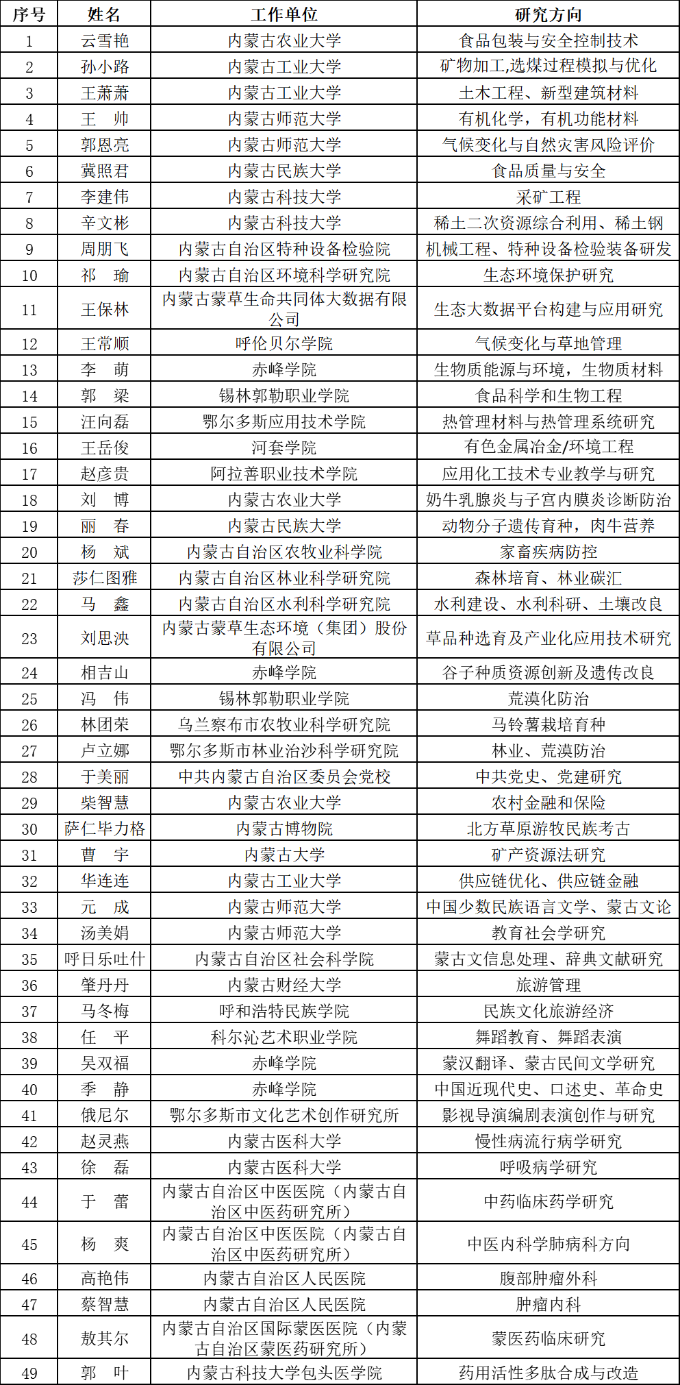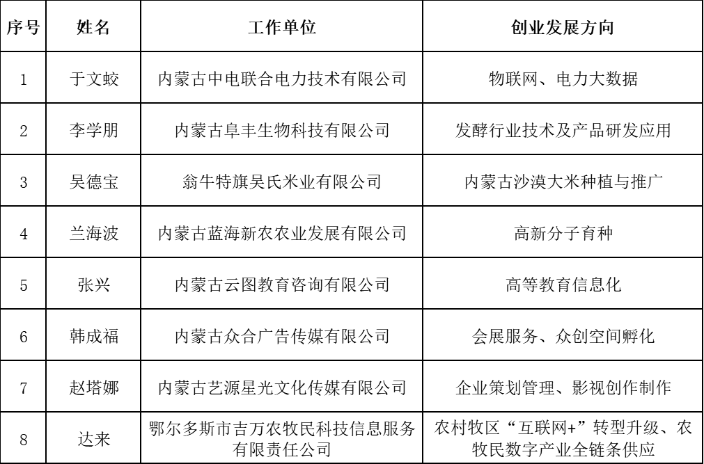日前,内蒙古自治区人力和社会保障厅、中共内蒙古自治区委员会组织部联合下发文件,公布2020年度内蒙古自治区“草原英才”工程青年创新创业人才入选名单。