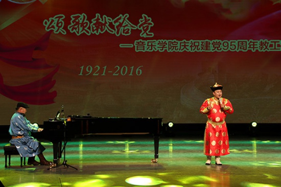 为庆祝建党95周年,6月22日下午16:30,由音乐学院党总支主办、机关党总支协办的“颂歌献给党——庆祝建党95周年教职工演唱会”在我院演艺厅举办。