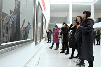 为促进我院学科建设的稳步发展,本着提高进步、拓展思路和交流合作的宗旨,2014年美术系选派的四名骨干教师:苏茹娅、胡日查、包玉荣、董险峰参加了中国美协、中国美院、中国国家画院的高级进修班,通过一年的进修学习,四位教师在专业创作上取得了巨大的成果和进步。本次展览共展出四位老师进修期间的60余幅作品,以中国画、油画,版画,为主,涵盖工笔、素描、木板、铜板等多种创作方式,充分显示了四位教师的科研能力和创意风采。师生们通过观看画展,体味感受四位教师对艺术的追求和探索,品味他们对艺术创作不同的诠释和解读。