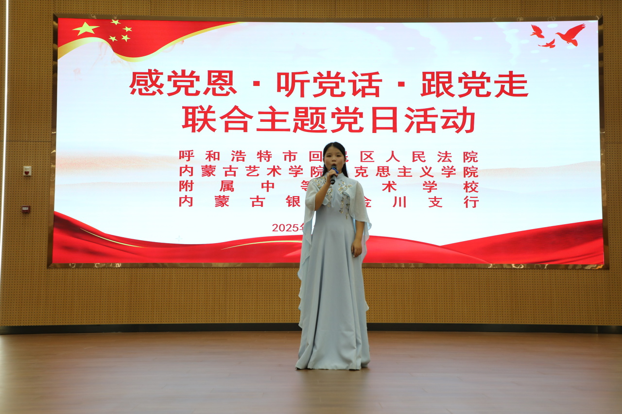 我校学生和回民区人民法院干警先后献上了精彩节目,大家在艺术熏陶中感受团结奋进的力量。