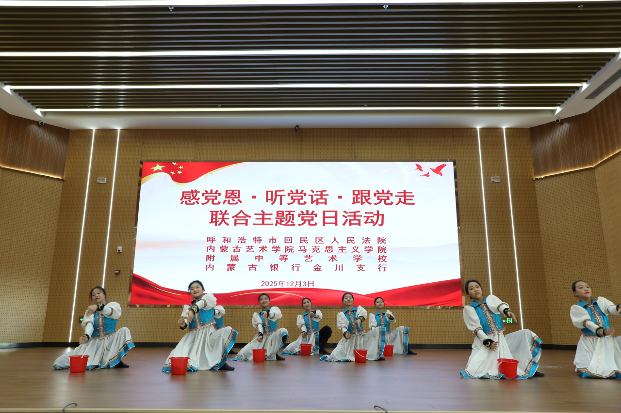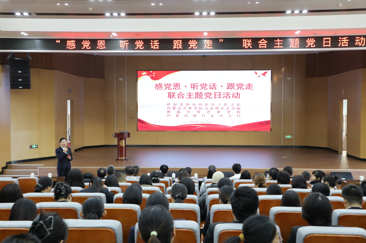 为进一步学习宣传贯彻党的二十届四中全会精神,进一步铸牢中华民族共同体意识,12月3日,我校党总支联合马克思主义学院党总支、科研处党支部同内蒙古银行呼和浩特金川支行到呼和浩特市回民区人民法院共同开展“感党恩、听党话、跟党走”联学共建主题党日活动,各基层党组织党员代表参加活动。