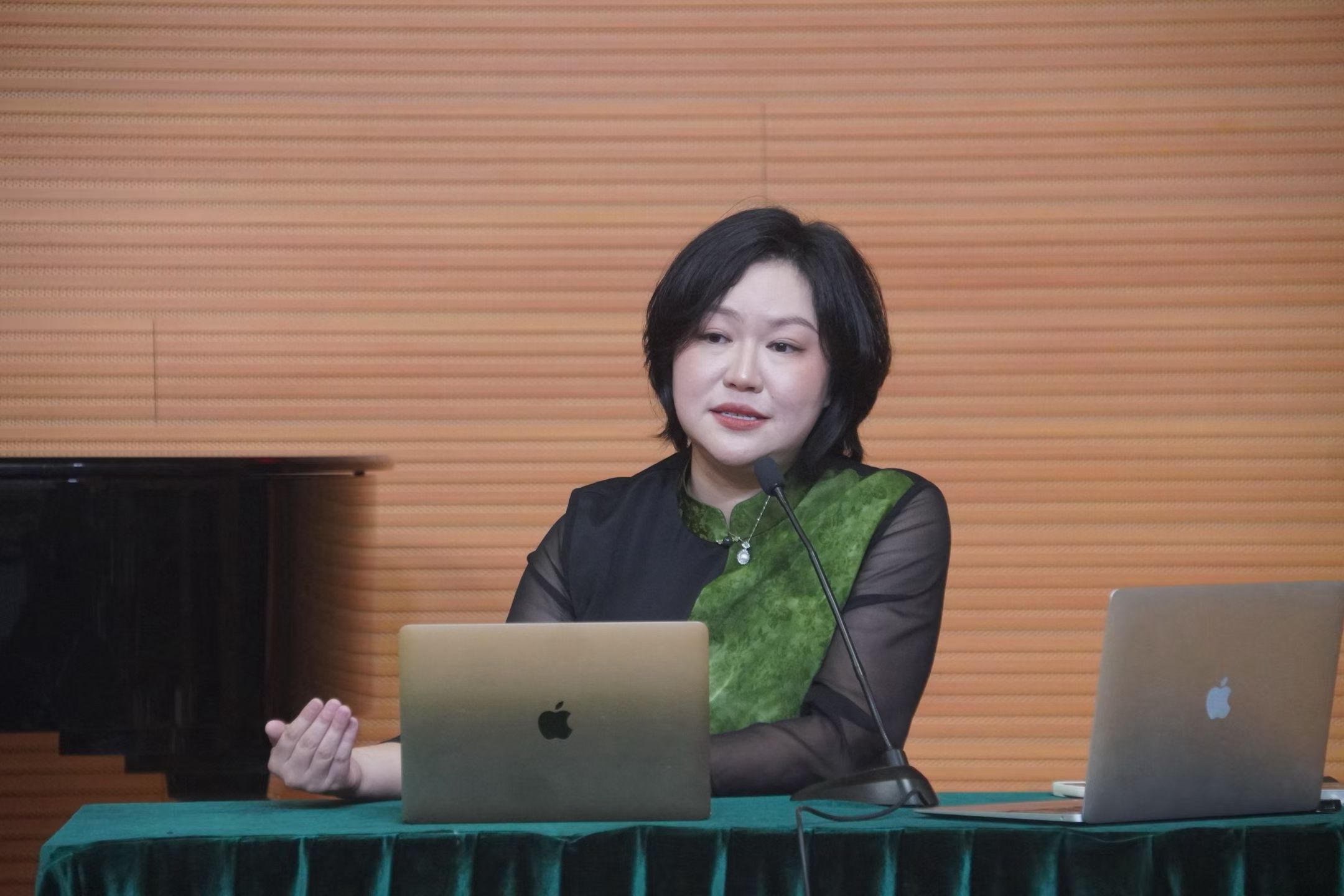紧接着由我校三名学生上台演奏,张柳萌副教授现场为她们进行了一对一的公开课的指导。左右手的技法,左手规范的手型、揉弦、揉音和绰音的区别、滚奏以及弹棒使用较为规范的角度等,针对学生们的具体问题指出了有效的改进方法。张柳萌老师的讲解深入浅出,让复杂的技巧变得清晰可感。