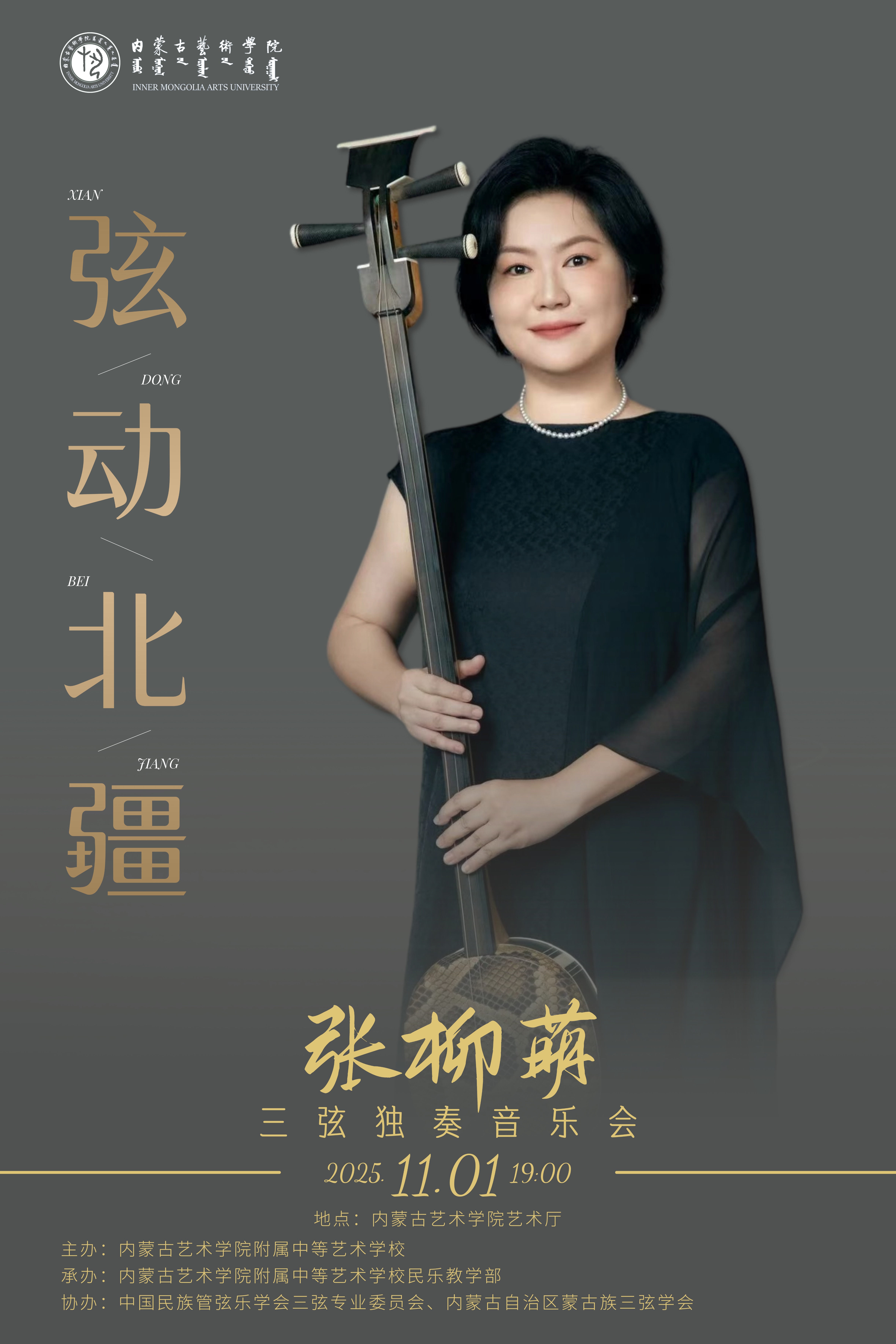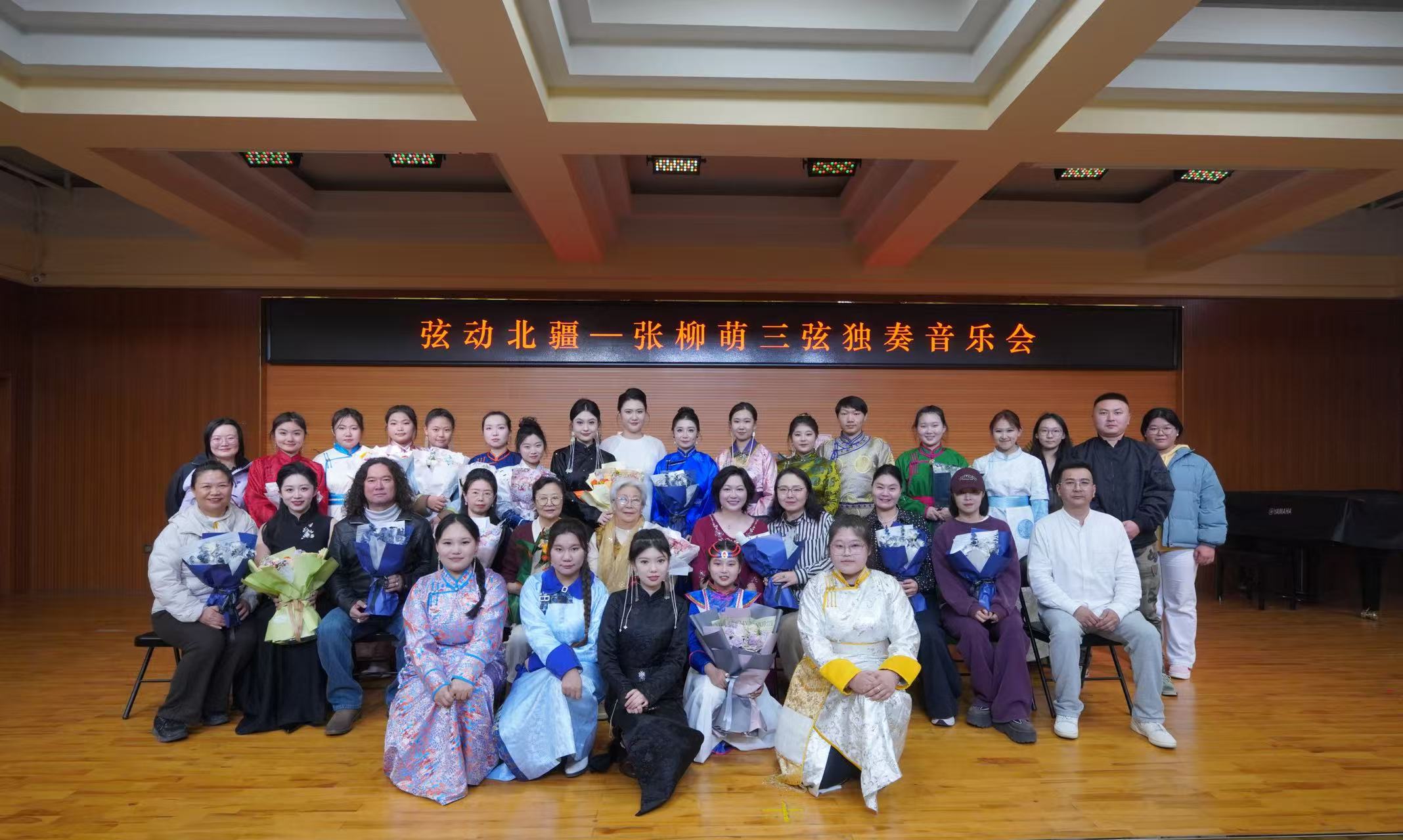 2025年11月1日19:00,我校在内蒙古艺术学院艺术厅举办“‘弦动北疆’——张柳萌三弦独奏音乐会”,张柳萌老师为现场数百名师生观众奉献了一场高水准艺术演出。三弦演奏家、教育家、内蒙古蒙古族三弦学会会长领春老师,内蒙古艺术学院音乐学院张婷教授、赵佩茹副教授,内蒙古艺术剧院曲艺团一级演员宝音朝克图,我校党总支副书记、副校长娅茹及我校师生观看了演出。