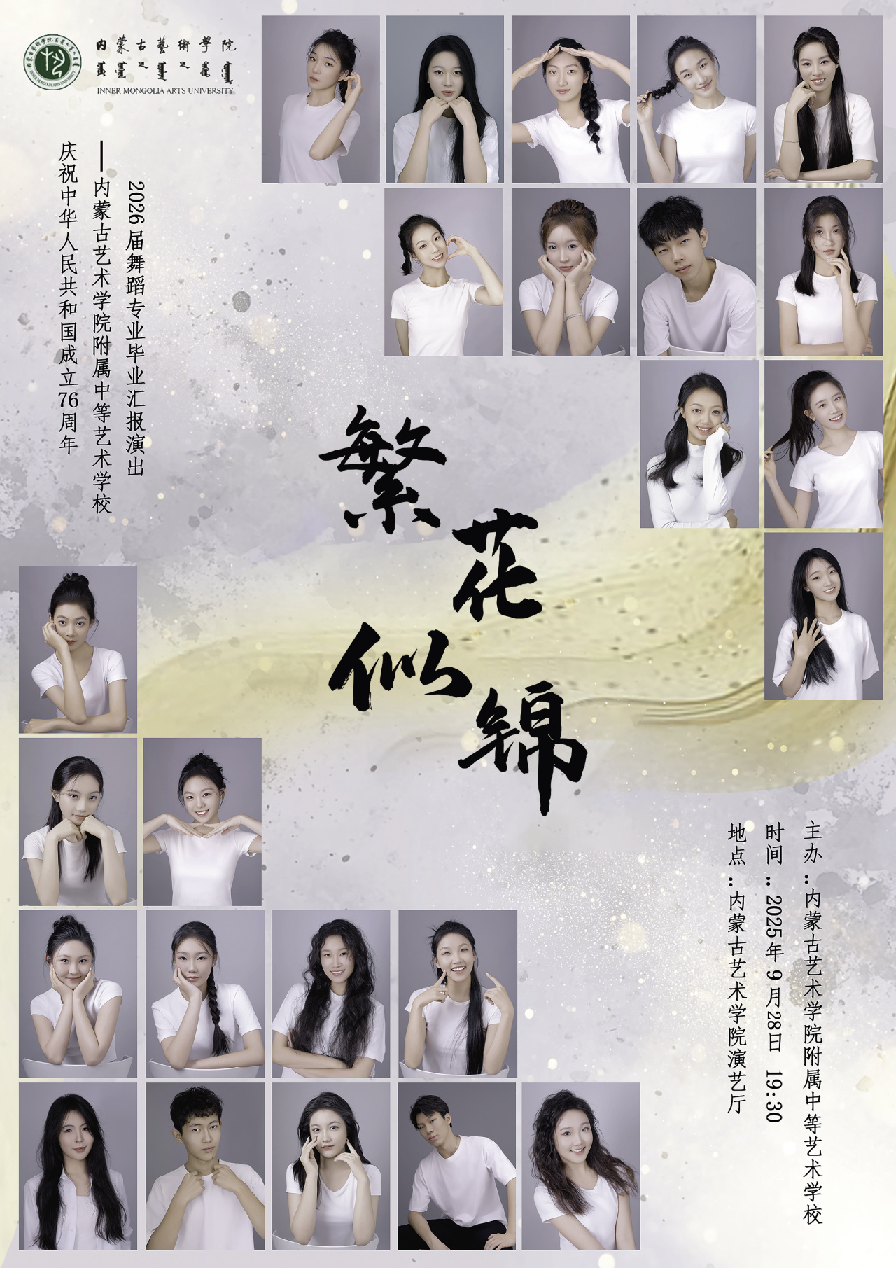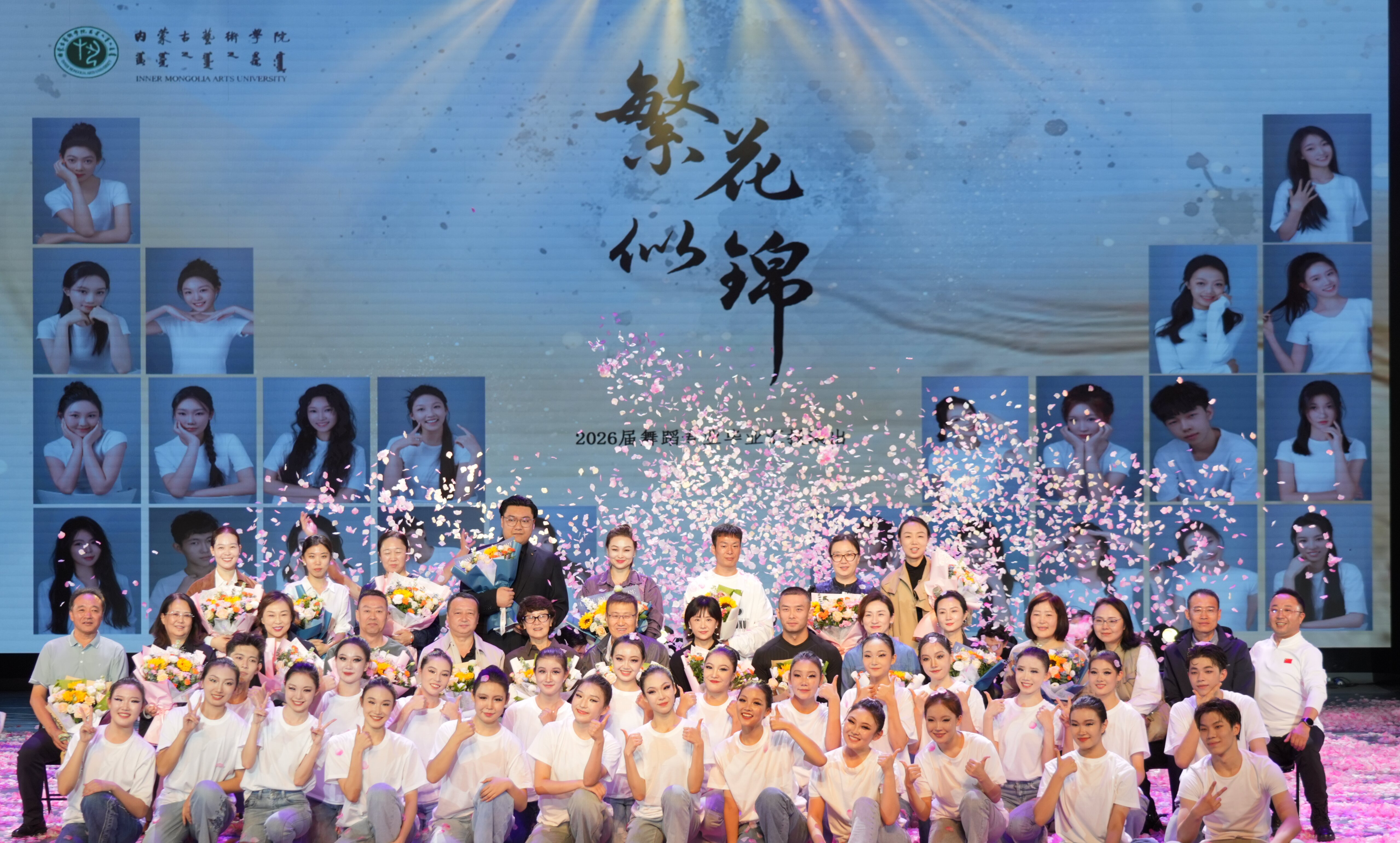 9月28日19:30我校成功举办2026届舞蹈专业毕业汇报演出。这场汇报演出通过三个篇章的精彩呈现,展现了新时代艺术学子的风采与担当,也为祖国献上了一份饱含深情的艺术礼赞。我校领导班子成员及全体师生观看了演出。演出在抖音、微信视频号、哔哩哔哩等多个网络直播平台全程直播。