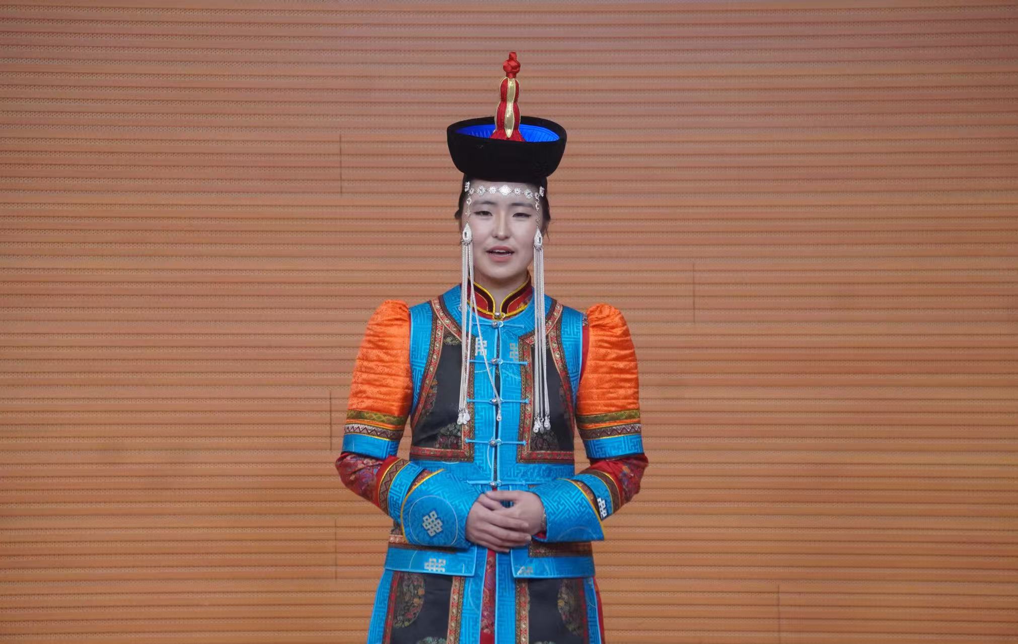 演出现场,我校2024级长调专业方向的学生们以饱满的热情演绎了15首经典的长调曲目,宝音和希格老师担任音乐会马头琴伴奏。同学们以扎实的声乐功底和真挚的情感表达,赢得了台下阵阵掌声。其中,《修长的青马》以轻盈的旋律展现草原生灵的活力,《罕山的雪》用清澈悠远的唱腔歌颂祖国的壮美山河,《金翅鸟》《可爱的海伦》等歌曲则蕴含深厚的民族情感。结束曲,全体同学齐声献唱《牧民合唱共产党》,更是以磅礴恢宏的气势唱出了各族人民一心向党的坚定信念。学生们用高亢悠远的唱腔,将草原儿女对党的赤诚之心、对祖国的热爱之情融入每一个音符,展现了长调艺术独特的感染力与时代魅力。长调的婉转与红色精神的厚重相互交织,既彰显了北疆文化的传承与创新,也体现了新时代青年“感党恩、听党话、跟党走”的坚定信念。