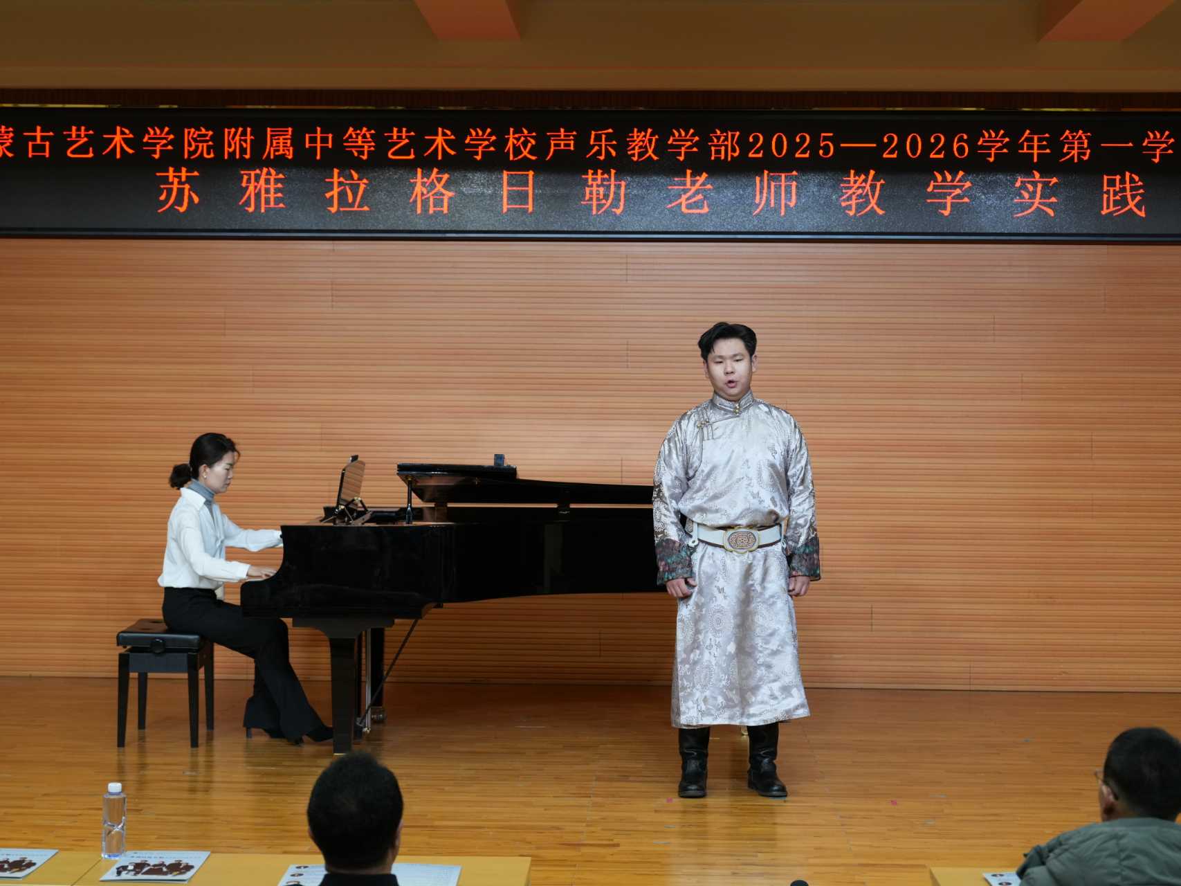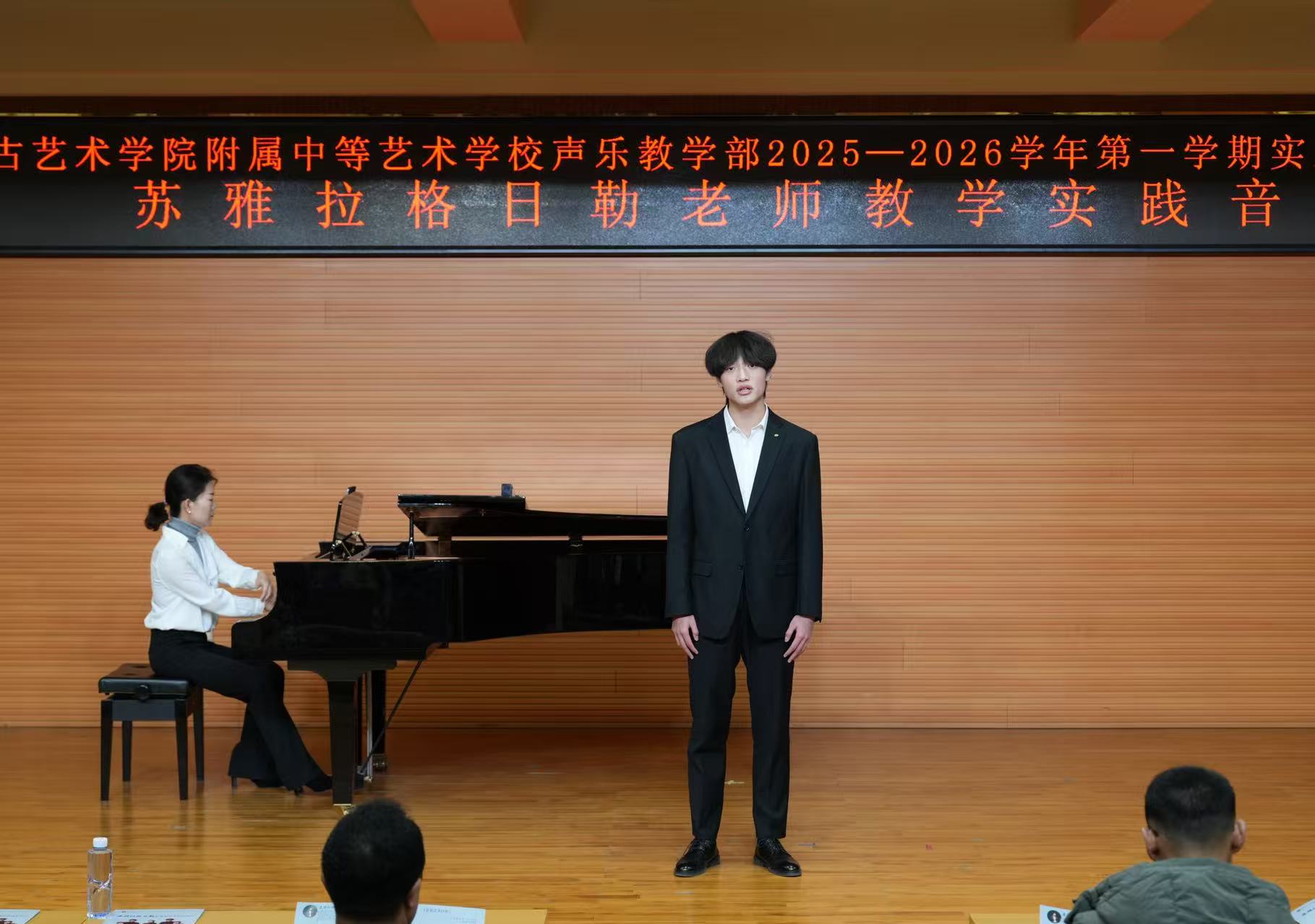整场音乐会高潮迭起,掌声不断。同学们用青春的歌声和饱满的热情,充分展示了在苏雅拉格日勒老师悉心指导下所取得的丰硕学习成果,也体现了我校声乐教学部在人才培养和专业实践方面的显著成效。音乐会作为实践周的重要环节,是舞台与教学融合的桥梁,是“以演促教,以教促学”教育理念的生动实践。未来,声乐教学部将继续以实践周为契机,为培养更多高素质艺术人才夯实基础。