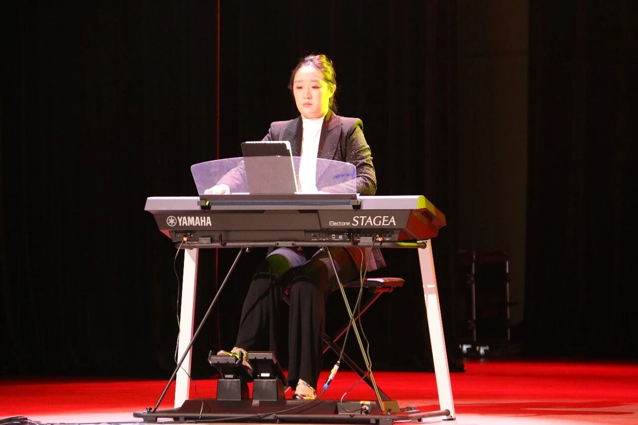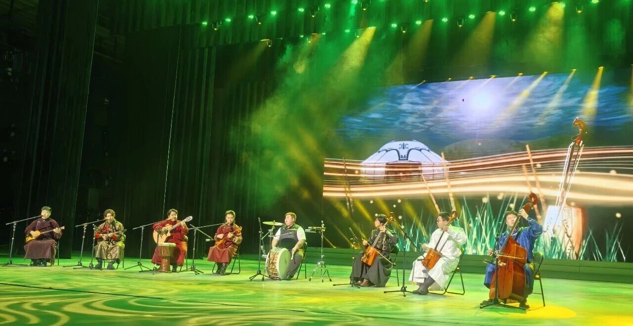 晚会现场座无虚席,雷鸣般的掌声与真挚的欢呼声交织回荡,将观众对艺术演出的热忱展现得淋漓尽致。上半场的音乐篇章中,一曲铿锵有力的呼麦表演震撼登场,雄浑的唱腔瞬间点燃全场氛围,让观众沉浸式感受草原文化的磅礴力量;萨克斯管独奏婉转悠扬,如清风拂面般治愈人心;长调吟唱饱含浓郁的草原深情,余韵悠长;电子管风琴旋律激昂奋进,节奏铿锵;男女生二重唱音色交融、音韵动人,每一个节目都堪称精品。
