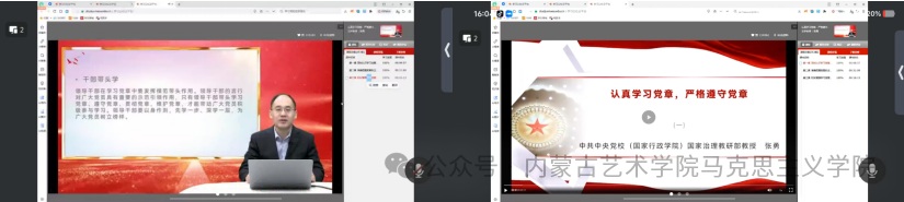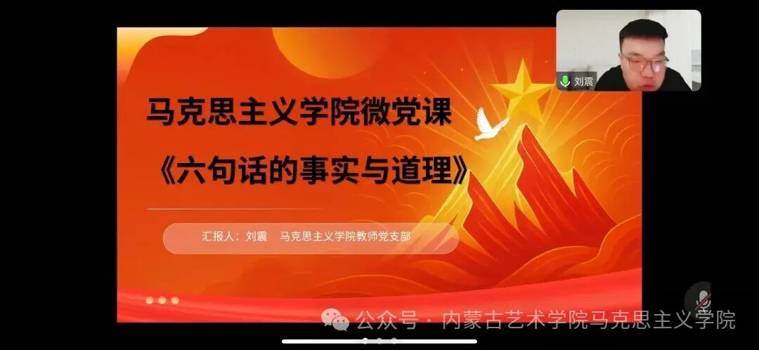 为深入强化基层党支部建设,筑牢党员思想理论根基,12月12日,马克思主义学院教师党支部以线上会议形式开展专题学习培训,支部全体党员同志参会学习,会议由教师党支部书记姜南副教授主持。 培训伊始,党支部宣传委员刘震老师以微党课形式宣讲《六句话的事实和道理》,内容紧扣核心要义,条理清晰、阐释透彻,帮助支部党员进一步深化理论认知,凝聚思想共识。随后,党支部围绕“如何推动高校基层党支部建设标准化规范化与特色化创新协同发展”主题开展专题研讨,多位党员同志依次发言交流。丁丽丽老师以《以标准化为基 以特色化为翼 推动高校基层党支部建设提质增效》为题,阐述标准化与特色化融合发展思路;党支部纪检委员梁杰老师结合《加强高校基层党组织标准化建设 着力推进基层党建高质量发展》,聚焦标准化建设核心要点分享实践思考;支部组织委员王欣欣老师围绕《人工智能赋能新时代党的建设高质量发展》,探讨科技与党建融合新路径;党总支副书记、副院长何奥龙老师立足学院特色,以《探索艺术学院马院党支部建设标准化规范化与特色化创新协调发展的新路径》为题,明确贴合艺术院校思政教育特点的党建工作方向,党支部其余同志均提交书面研讨发言材料,全面深化研讨实效。最后,支部全体成员同步参与全校党员和党务工作者培训班线上课程,系统学习党建相关知识,夯实党务工作能力。 教师党支部此次专题学习培训,内容扎实、重点突出,既强化了党员教师的理论素养,又明晰了基层党支部建设优化方向,为后续推动马院教师党支部党建提质增效、赋能艺术学院思政教学高质量发展奠定坚实基础。