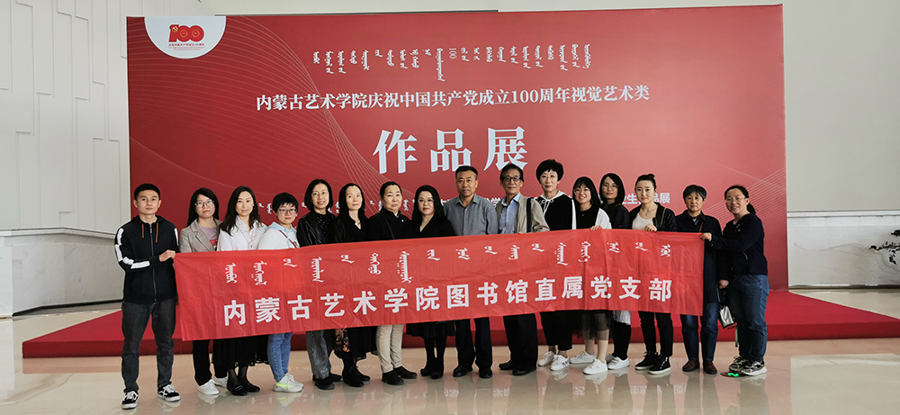 2021年5月18日上午,图书馆直属党支部开展了党史学习教育主题党日活动,带领全体馆员在内蒙古美术馆参加了内蒙古艺术学院庆祝中国共产党成立100周年视觉艺术类主题作品展开幕式。