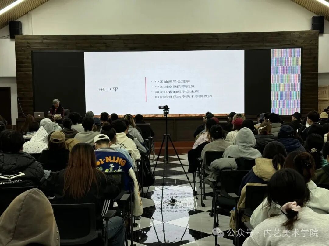 为提升我院师生写生创作水平,2025年9月9日,我院与赤峰学院共同邀请中国油画学会理事、黑龙江省油画学会主席、哈尔滨师范大学美术学院教授、博士生导师田卫平,讲授“关于写生”专题学术讲座。本次活动旨在深化学生对写生创作的理解,提升艺术实践能力。
