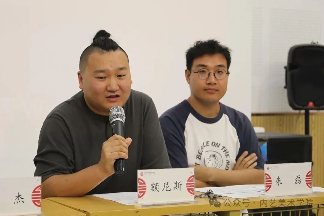 最后,美术学院党总支书记景磊向新生致以最热烈的欢迎,并介绍我校“22352”育人模式。景磊书记从三个方面对同学们提出要求:一是传承红色基因,厚植家国情怀;二是锤炼专业本领,勇攀艺术高峰;三是关注身心健康,筑牢安全防线。景磊书记希望同学们在健康学习、生活的同时,赓续红色血脉,从党的百年奋斗史中汲取力量,将个人理想融入中华民族伟大复兴伟业。愿同学们在内蒙古艺术学院这片热土上,以“蒙古马精神”驰骋追梦,用青春笔墨绘就靓丽北疆。