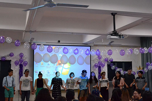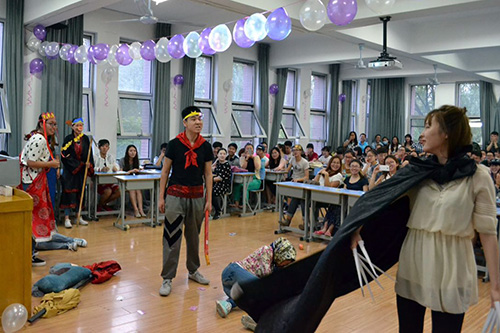 本次活动主要包括英语话剧表演、小品和歌舞节目、互动游戏等环节。同学们表演了《欢乐合唱团》(Glee),《大宝小宝》(Da bao and Xiao bao),《当你老了》(When you are old)等自己编创的英语小品短剧,还有中英韩文结合版的《三打白骨精》(Three strikes and demon)、颠覆传统的《龟兔赛跑》(The race between hare and tortoise)、充满动漫元素的《桃太郎》(Peachboy)、极具时尚潮流感的《百变大咖秀》(Your face sounds familiar)等英语幽默剧和歌舞表演。声情并茂、富有创造性的英文小品、短剧和歌舞节目,使同学们充分感受到英语语言的魅力,激发了学习英语的兴趣和积极性。