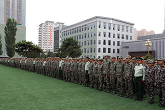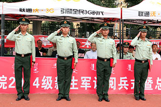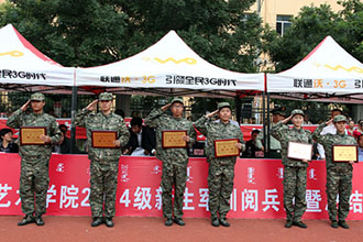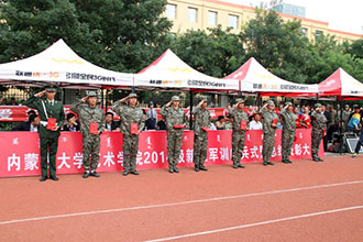 2014年9月12日下午,内蒙古大学艺术学院 2014级学生军训会操暨总结表彰大会在院本部操场隆重举行。公安边防部队呼和浩特指挥学校学员大队政委王宝民中校、学院党委书记黄海、院长李玉林、党委副书记兼纪委书记毅力以及学院各有关部门负责人、各系领导出席了大会。
