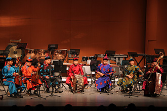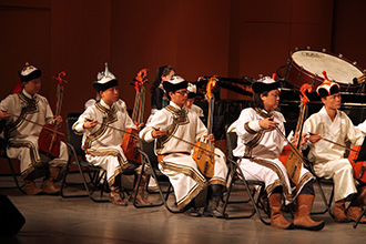 2015年5月30日晚7:30,内蒙古大学艺术学院蒙古族长调、马头琴、呼麦世界“非遗”专场音乐会在学院演艺厅举行。内蒙古自治区党委副秘书长余瑞卿、自治区文化厅厅长佟国清、内蒙古文联党组书记张宇、内蒙古大学党委书记朱炳文等领导和我院师生及社会各界人士共同观看了此次演出。